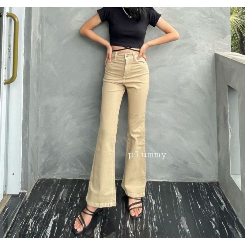 Celana Jeans Wanita HW Flared / High waist Cutbray Jeans - DARK BROWN