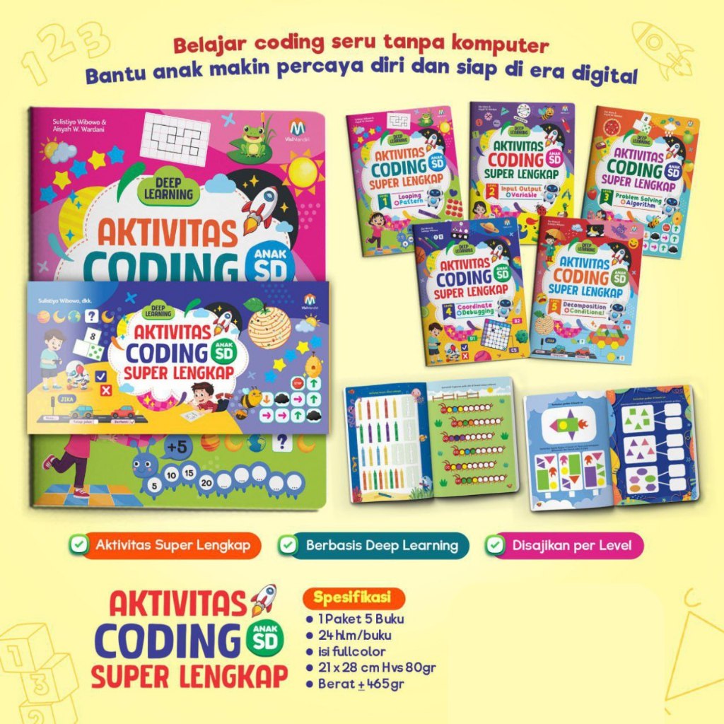Buku Coding Anak SD Aktivitas Superlengkap Edukasi 6 Tahun Full Color 5 Level Logika Ziyadbooks