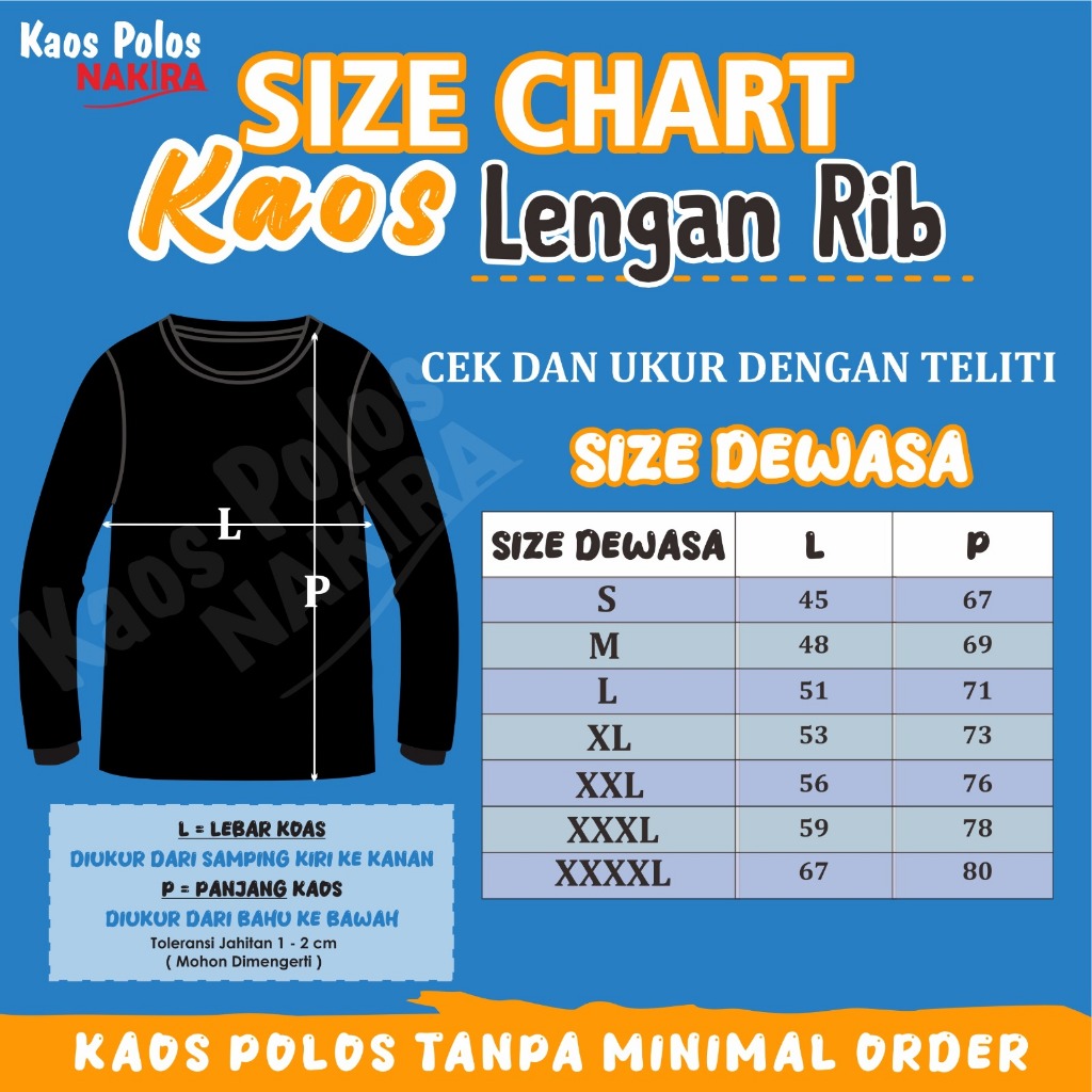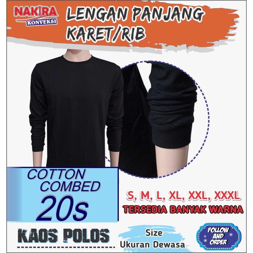 Kaos Polos Panjang Lengan Karet / Manset / Rib / Cotton Combed 20s ORI / Long sleeve / Pria Wanita