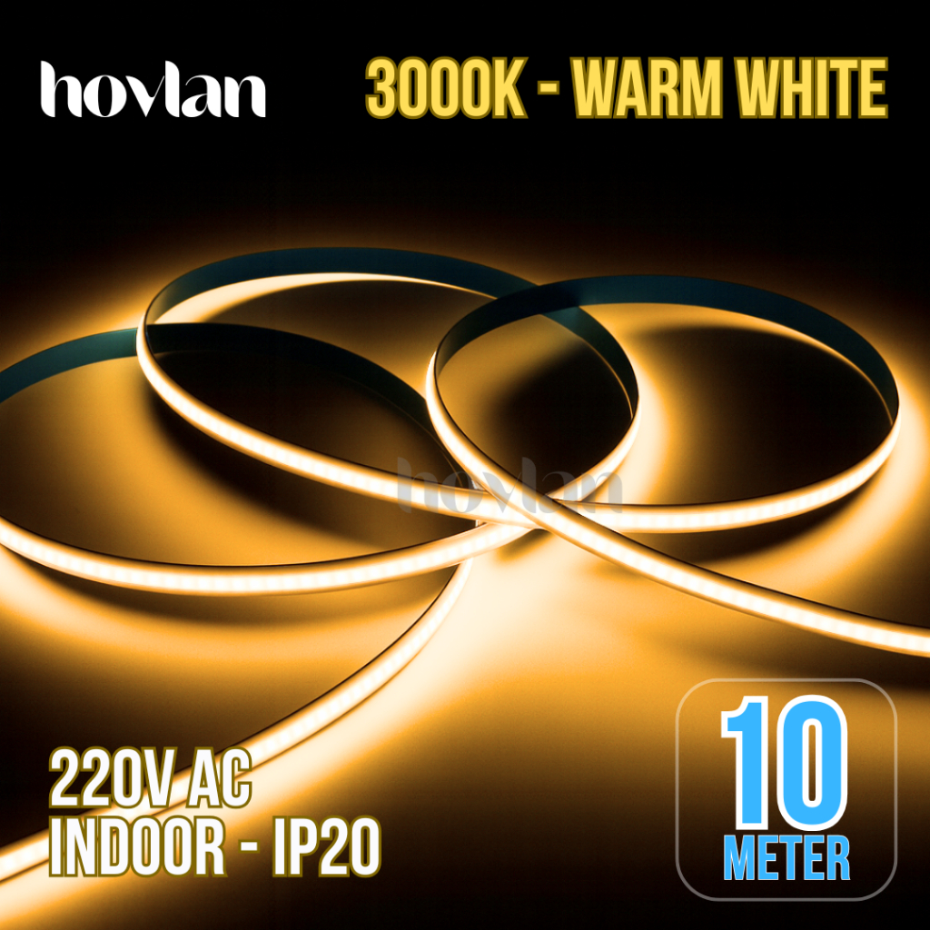 Led Strip Cob AC 220v Hovlan Lampu 10 Meter Plafon Flexible Selang Pita Dotless Tanpa Trafo Indoor