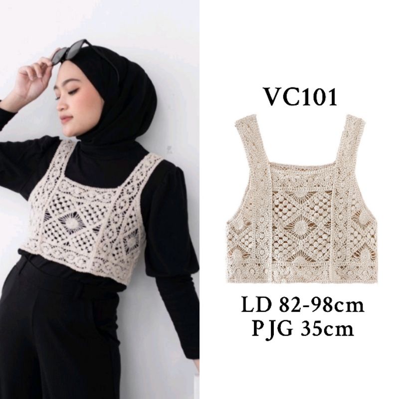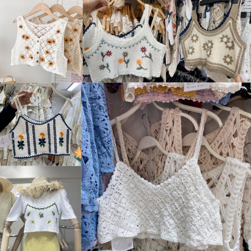 【Banyak Motif】Crochet Camisole Outer Vest Rompi Rajut Tank Top Model Crop Korean Style