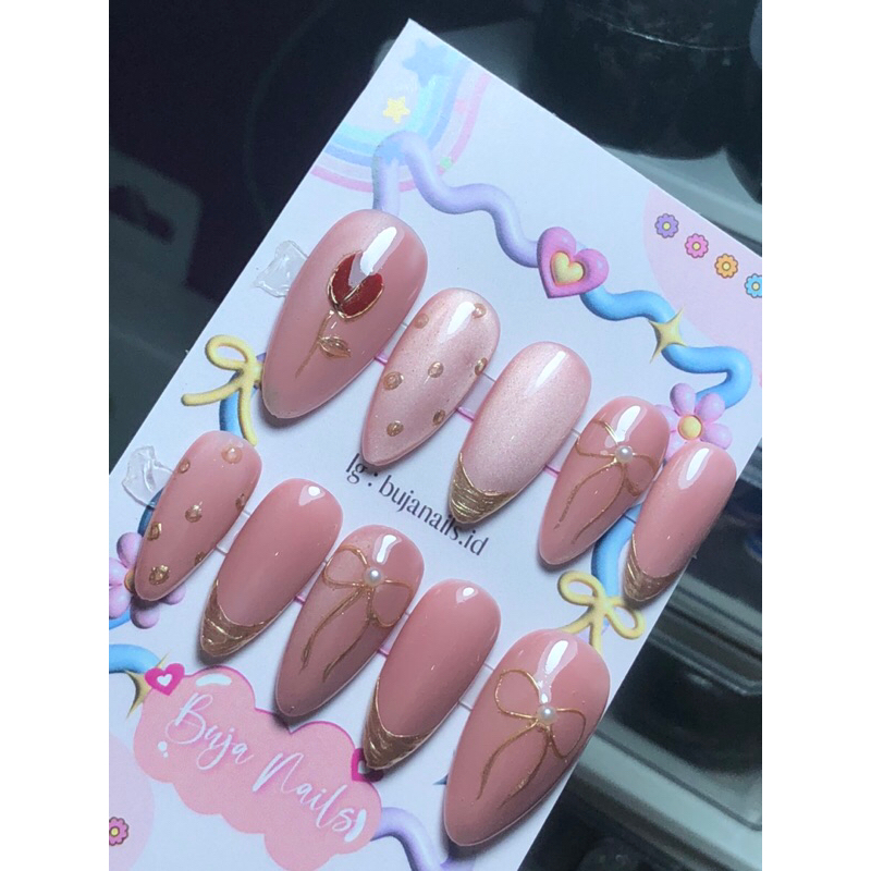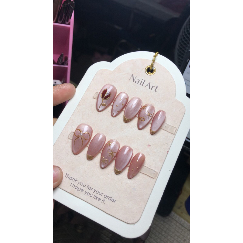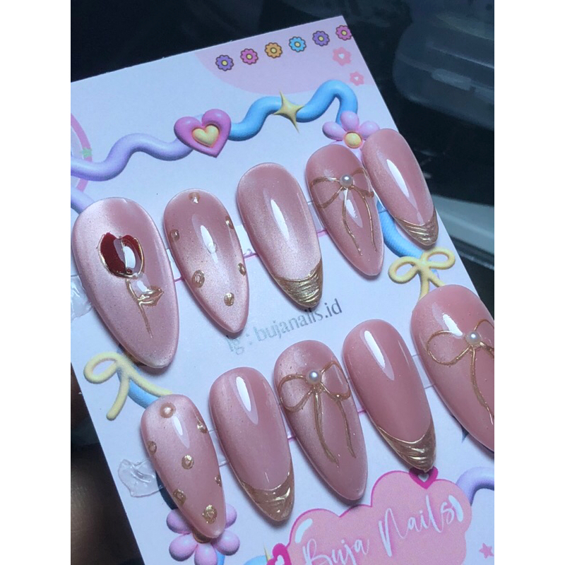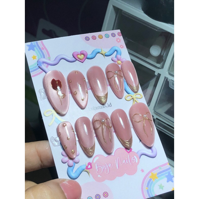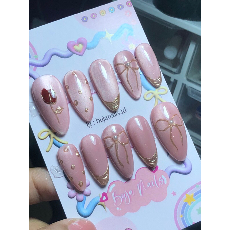 Press on nails cat eye pink soft silky|fake nails cat eye silky|cat eye silky|nail tip cat eye|kuku palsu cat eye silky