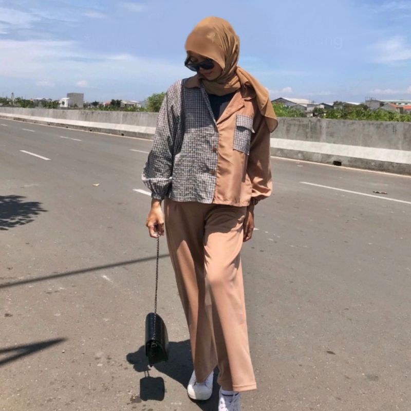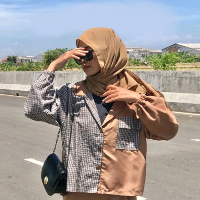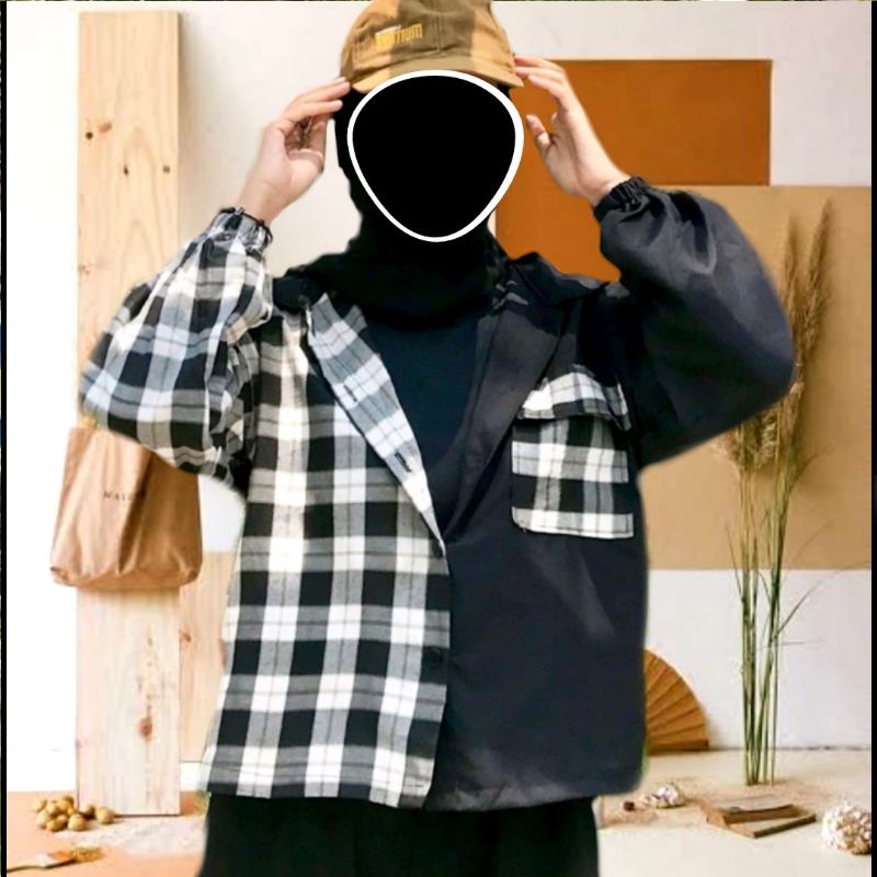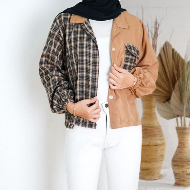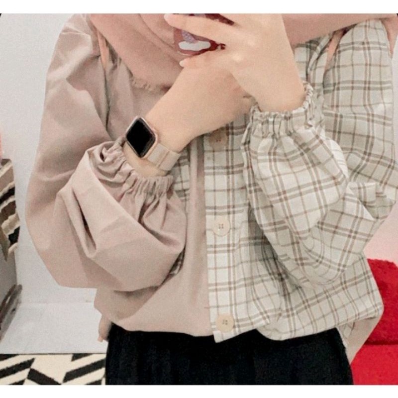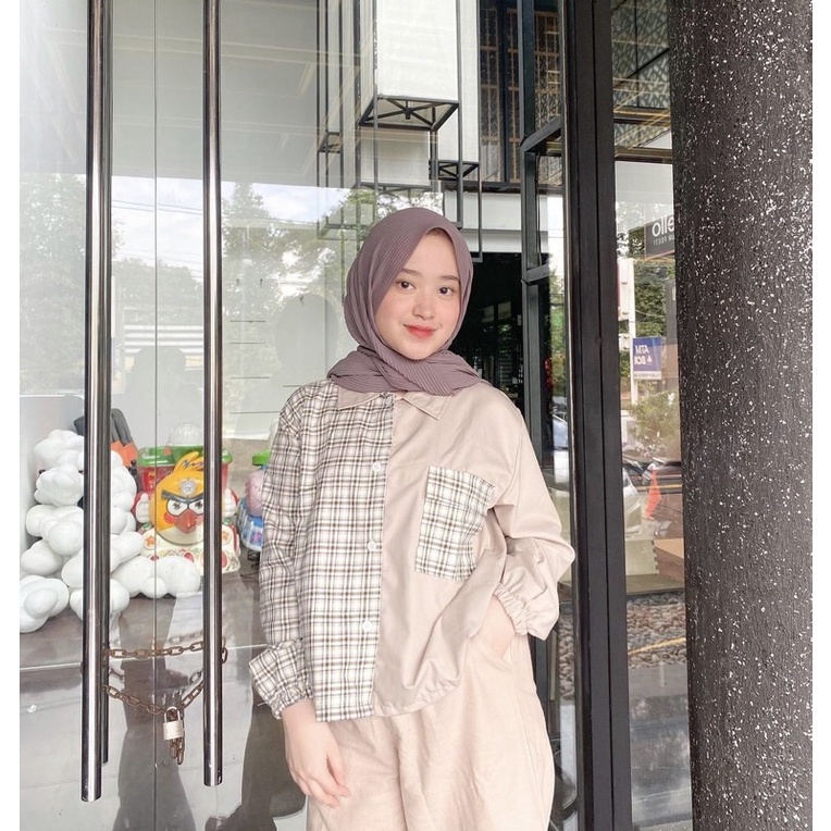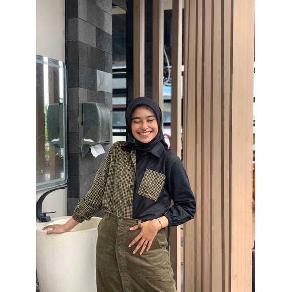 Kayshop - Twotone Kemeja Over / Balloon tartan shirt / Top tartan / CROP TOP TWO TONE TARTAN