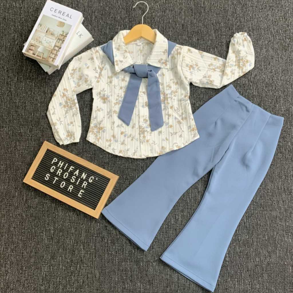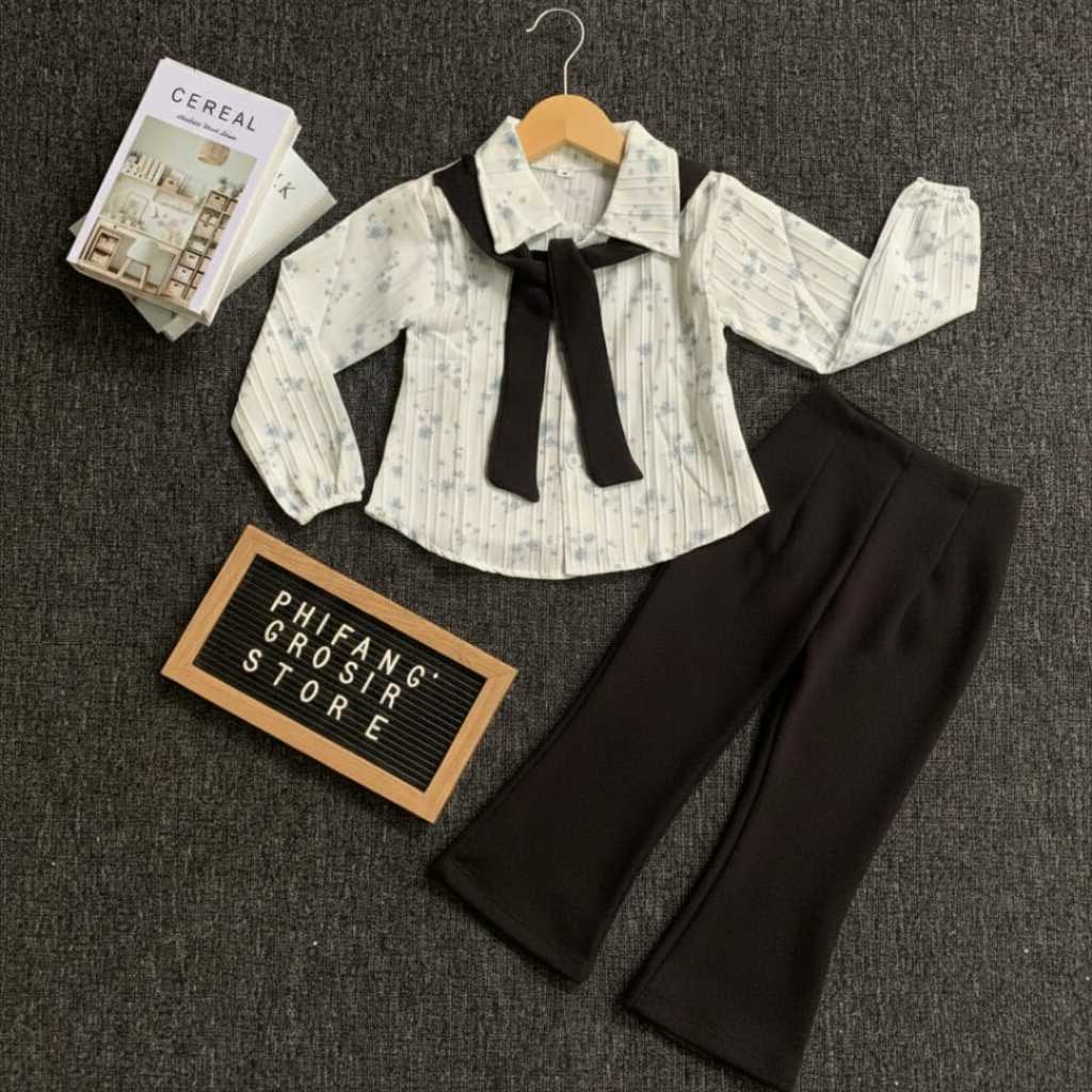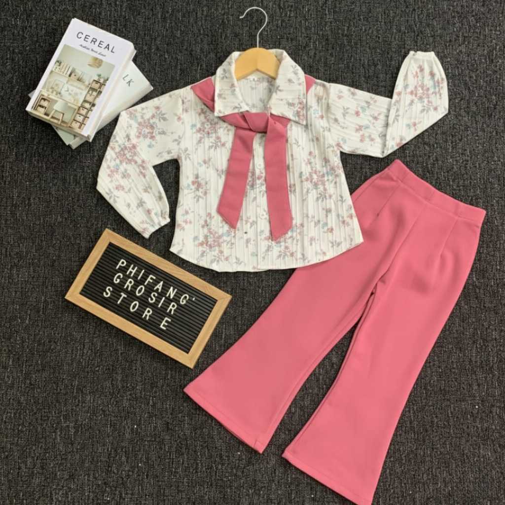 Oneset Lorenza Korean Style 1-10 Tahun Celana Cutbray/Setelan Baju Anak Perempuan Pita Lorenza