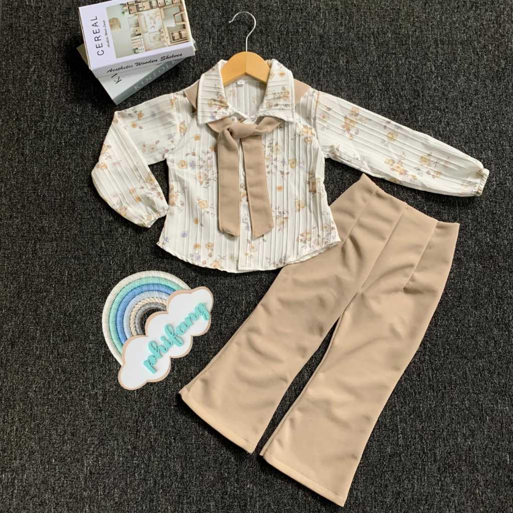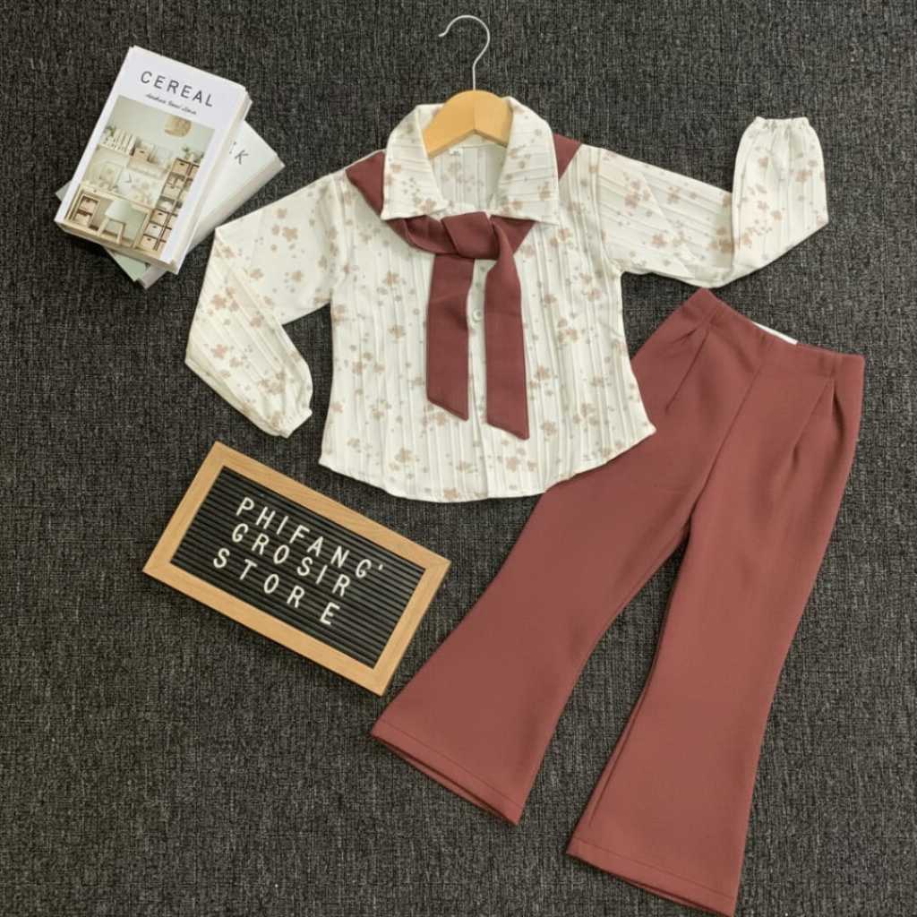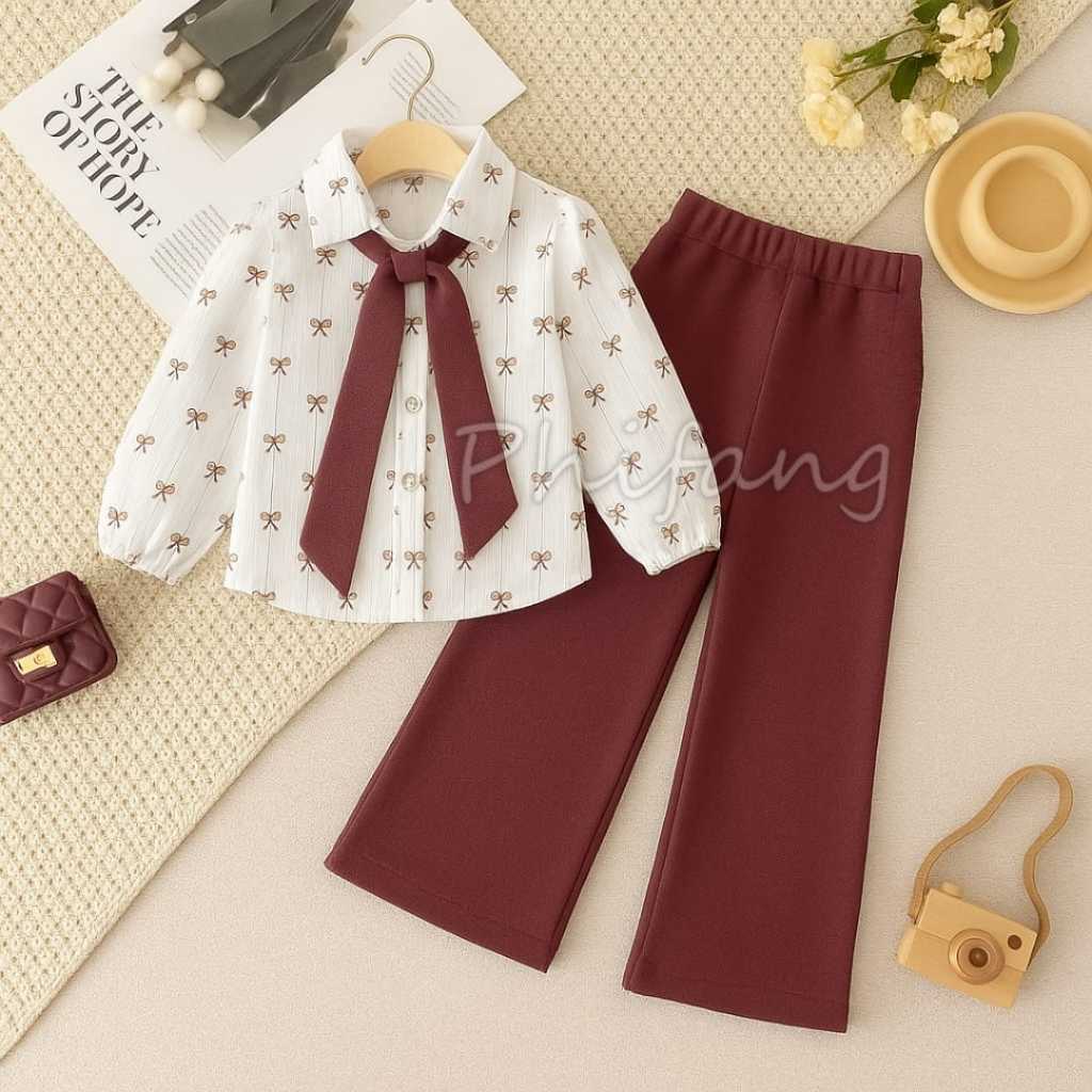 Oneset Lorenza Korean Style 1-10 Tahun Celana Cutbray/Setelan Baju Anak Perempuan Pita Lorenza