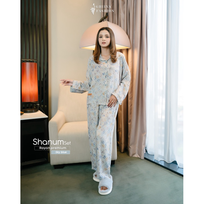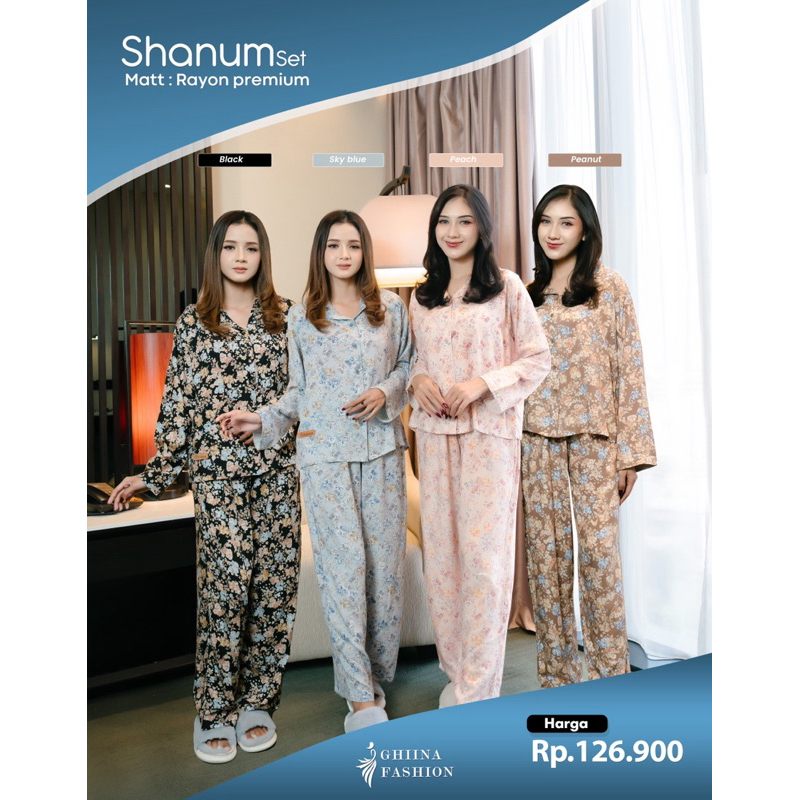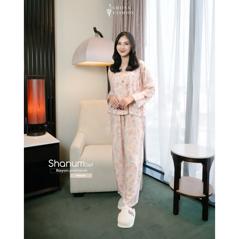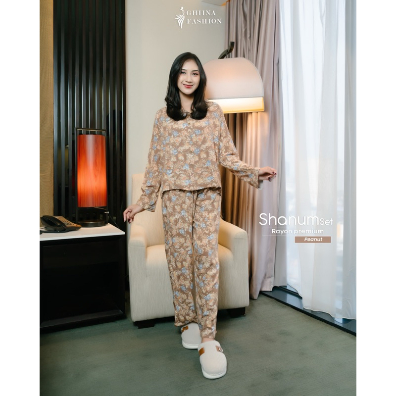 Shanum set, setelan motif, one set ghiina , setelan murah