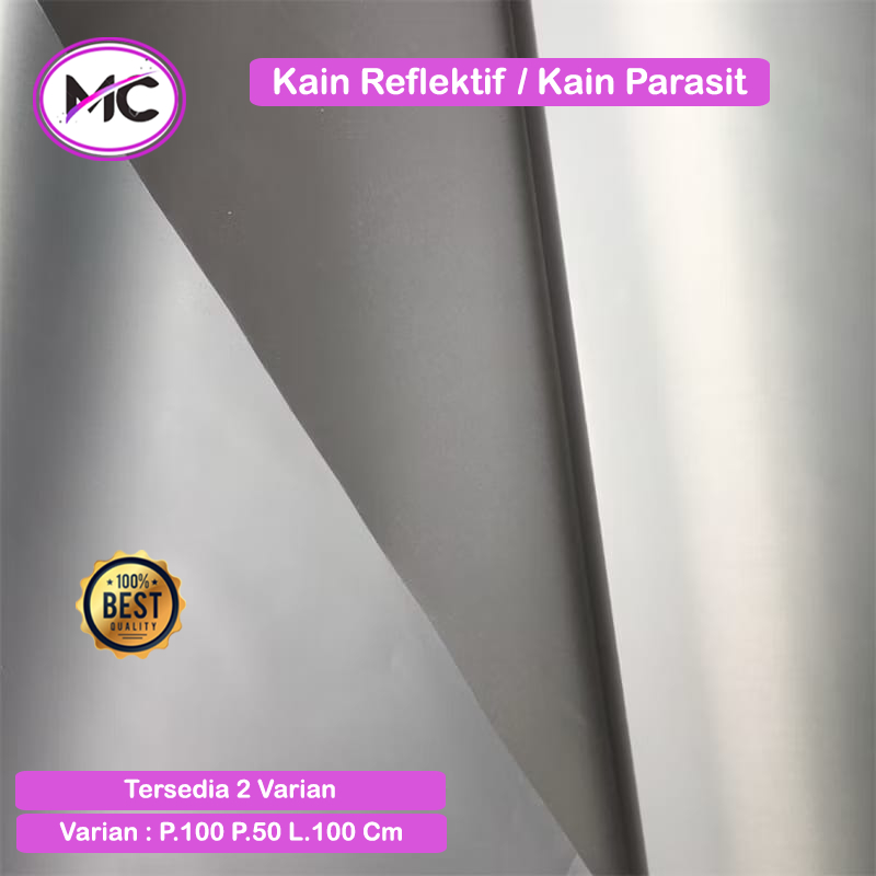 Kain Reflektif Silver Abu Tahan Air Parasit Sintetis Pemantul Cahaya Polyflex Reflektif Parasut Meteran Reflective Scotlight Waterproof Premium