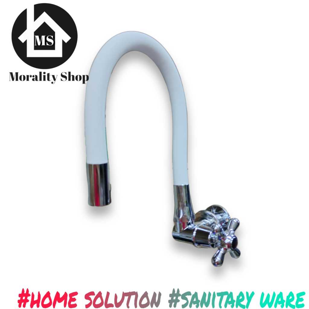 kran air angsa shower baling tembok dapur cuci piring pipa fleksibel 1/2 inch minimalis putih white
