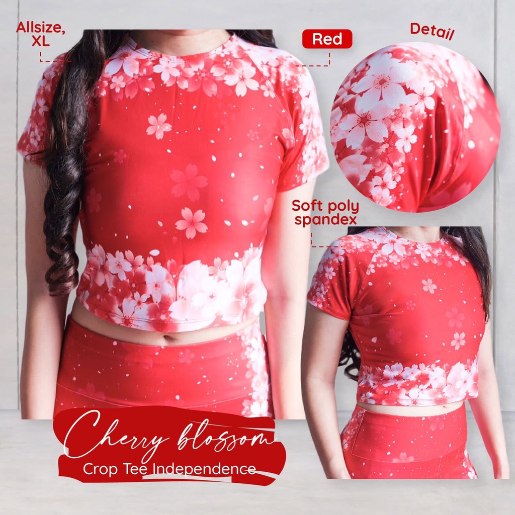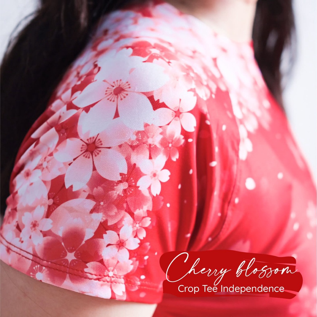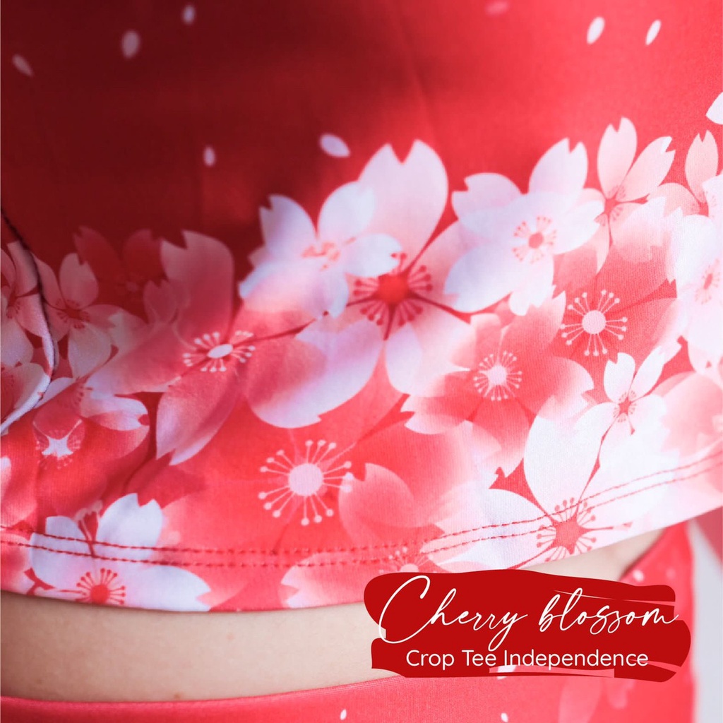 BAJU ATASAN CROP TOP CHERRY MERAH PUTIH BAJU ZUMBA MOTIF SAKURA BAJU DANCE