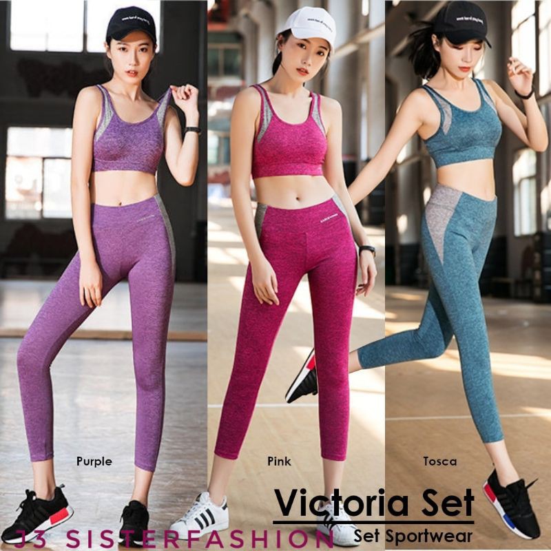 setelan senam vicset bea leging ungu pink tosca baju zumba baju yoga baju fitness