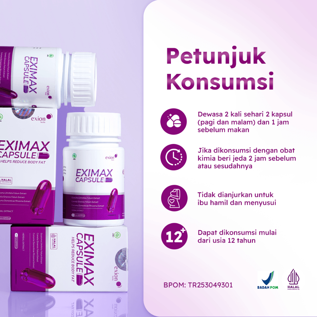 [New Formula] Eximax Kapsul Herbal Premium BPOM & Halal | Bantu Kurangi Lemak Tubuh & Bakar Lemak | Kontrol Nafsu Makan | Pemula Ampuh Nahan Laper | Turun 6-10 Kg