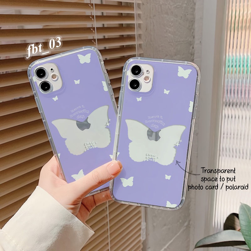 Case Custom Aesthetic Frame Butterfly Design Softcase Anticrack / Clearcase Transparan All Type