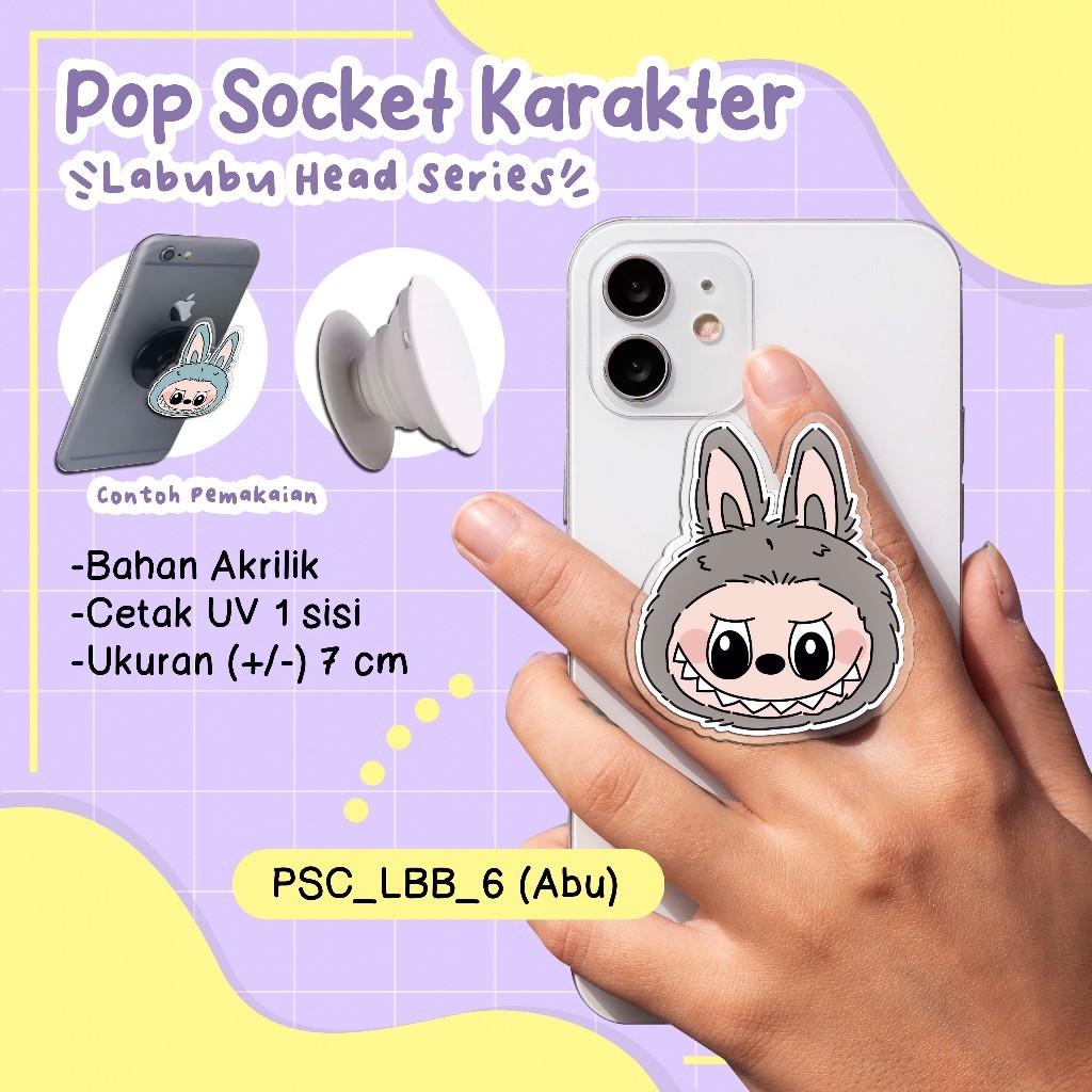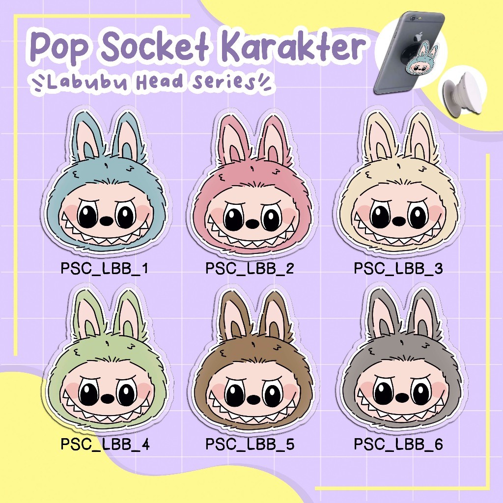 POP SOCKET LUCU KEKINIAN - Tema LABUBU HEAD / KEPALA LABUBU - KARTUN VIRAL - kode PSC_LBB