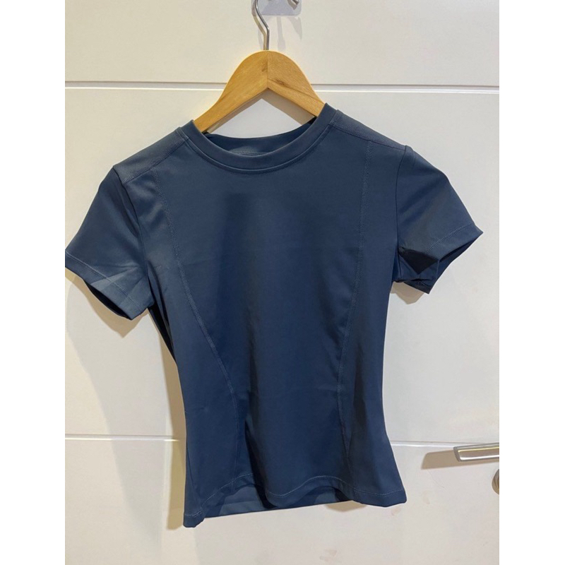 baju olahraga biru tua
