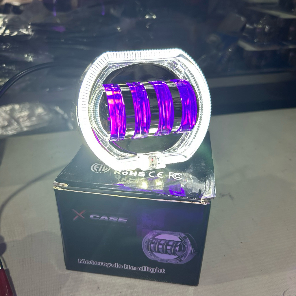 Lampu Depan Projie Biled Daymaker atau Lampu Biled Projie RGB Shroud 4 Lensa 8D 4.5 Inch Angel Devil Eye Universal DD 171 RGB