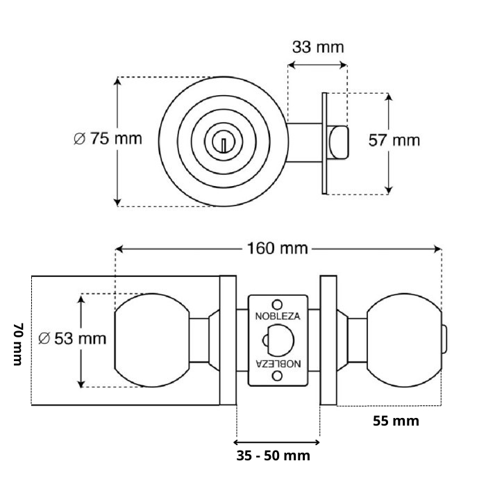 NOBLEZA Kunci Bulat Handle Gagang Pintu Kamar Mandi Stainless KBC-N785