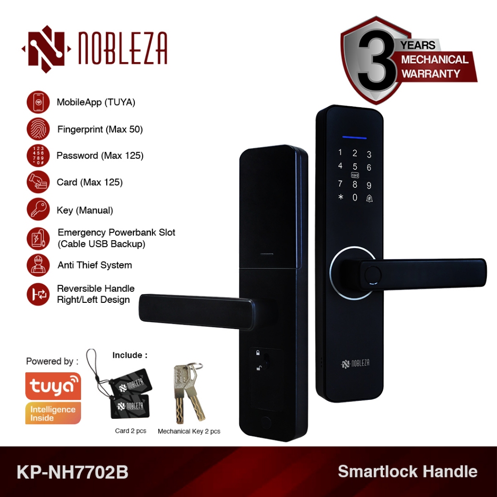 NOBLEZA Smart Door Lock Kunci Pintu Digital Handle Fingerprint RFID Smartlock App TUYA WIFI KP-NH7702