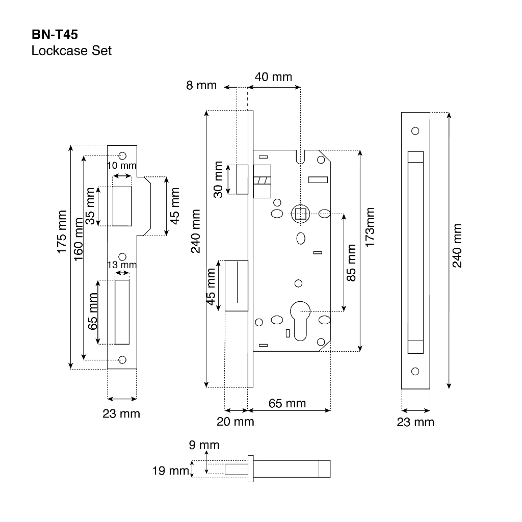 Nobleza Body Kunci Pelor Pintu Rumah Lockcase Mortice Roller Titanium BN-T45