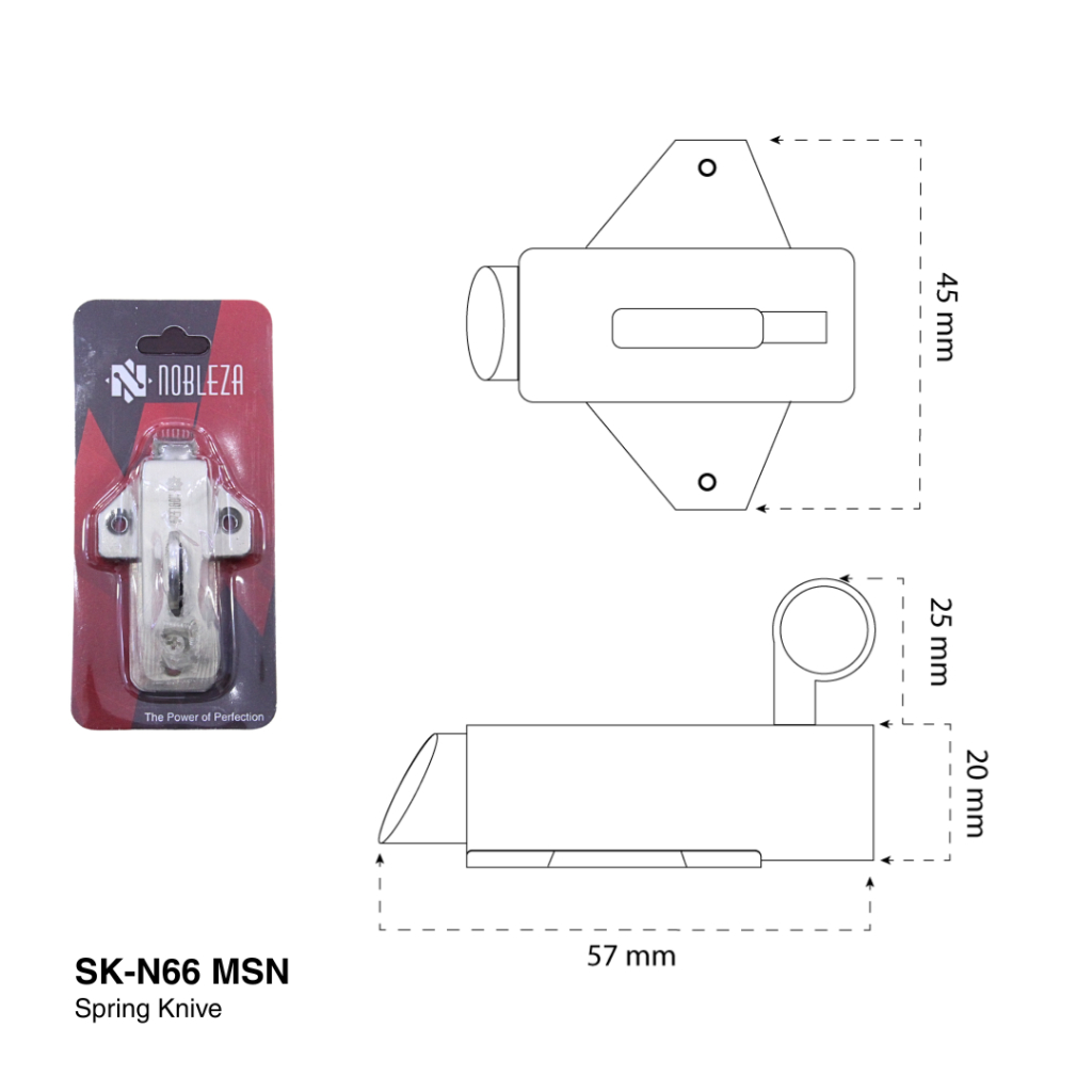 NOBLEZA Grendel Slot Jendela Spring Knive Knife knip Kunci Kodok Stainless Black Nikel Matte