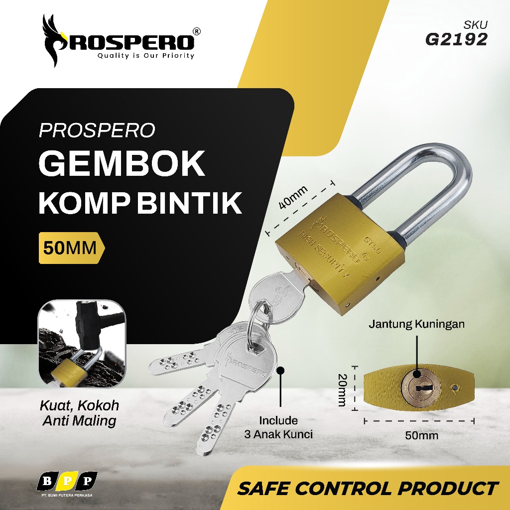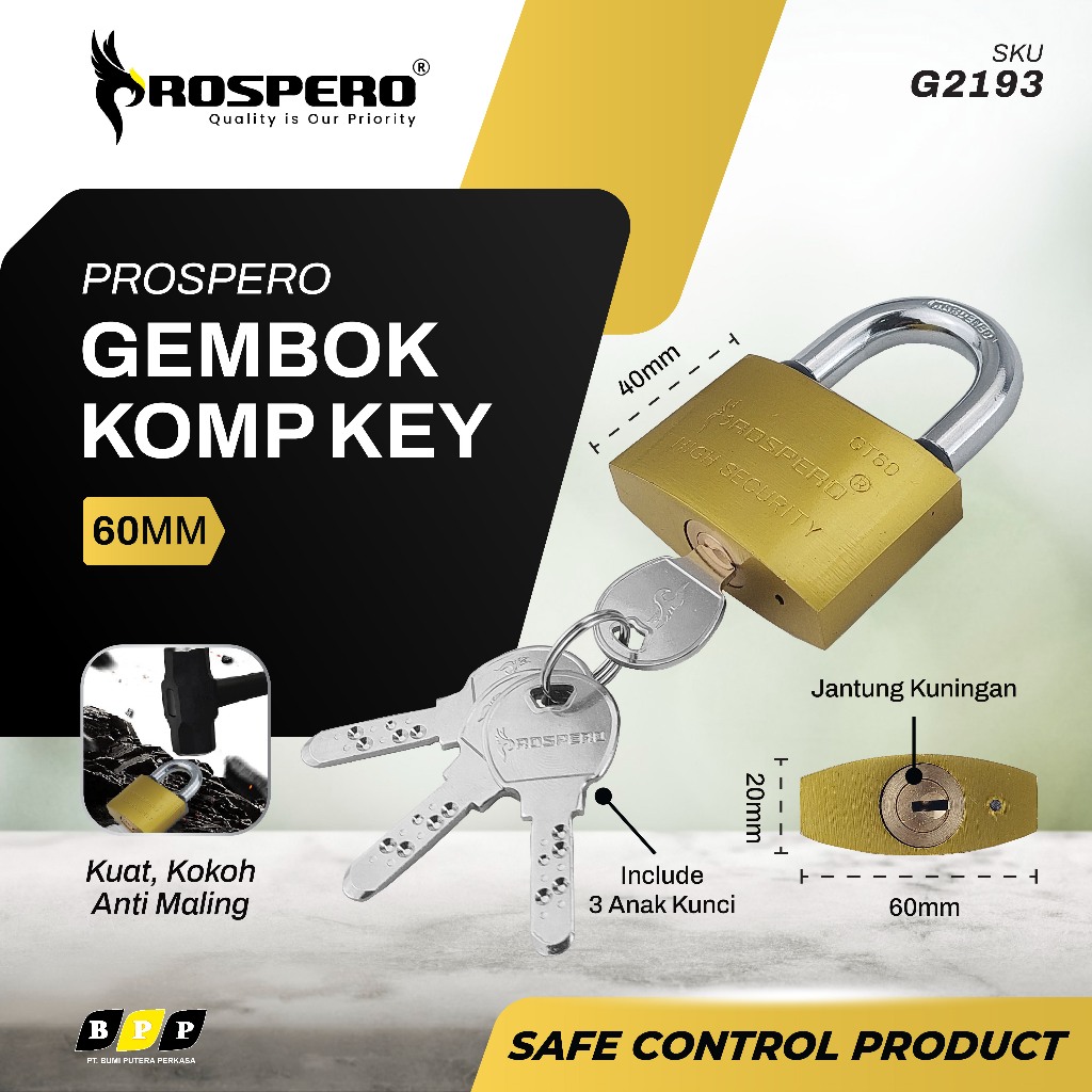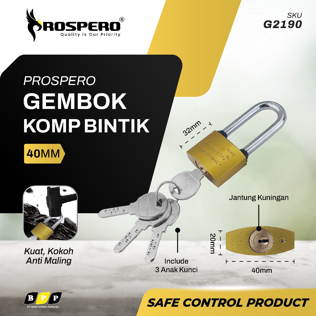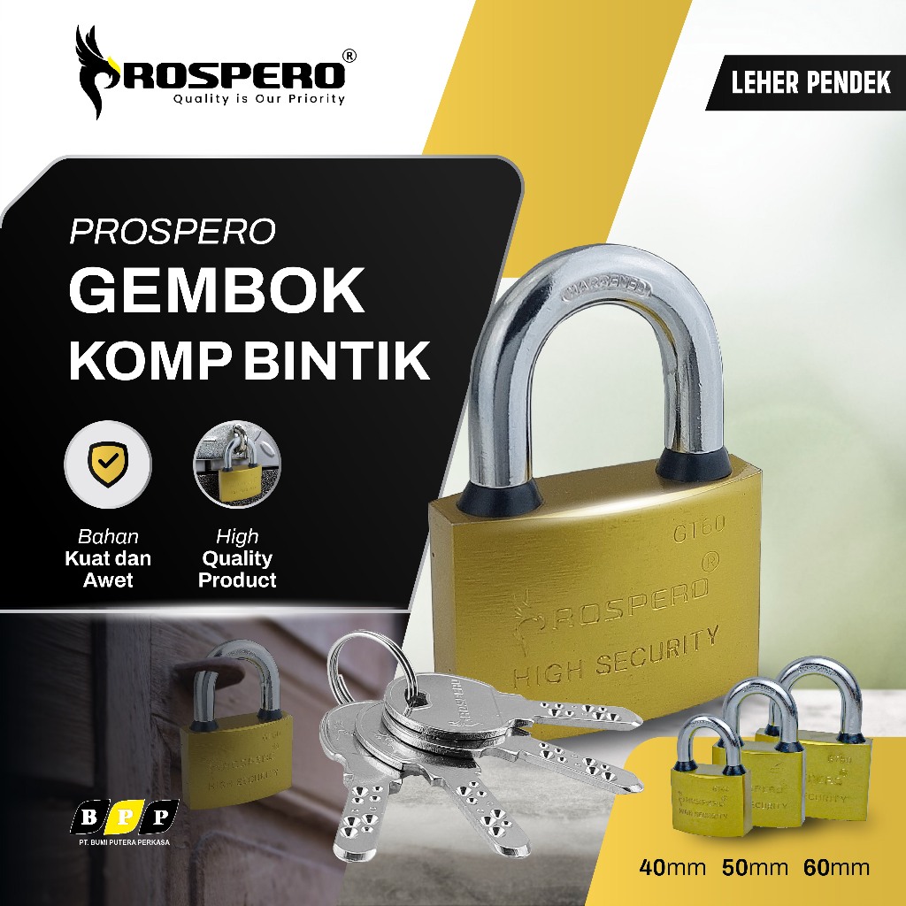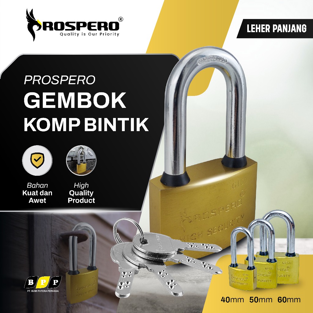 Gembok Gerbang / Pagar Leher Pendek & Panjang Gold 4 Anak Kunci PROSPERO | Gembok Pagar Rumah |