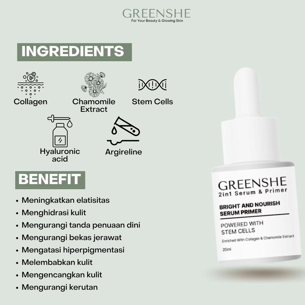 GREENSHE - BRIGHT AND NOURISH SERUM PRIMER (2in1 Serum Primer)