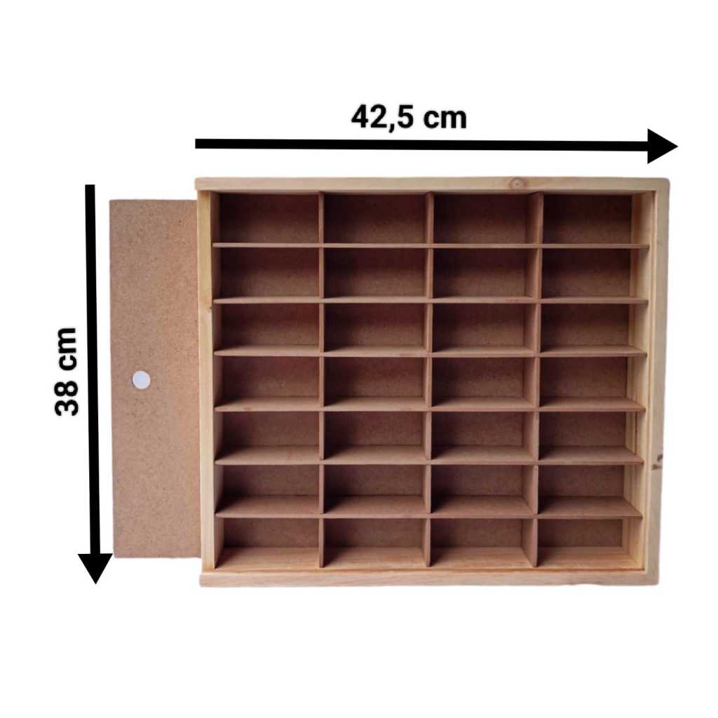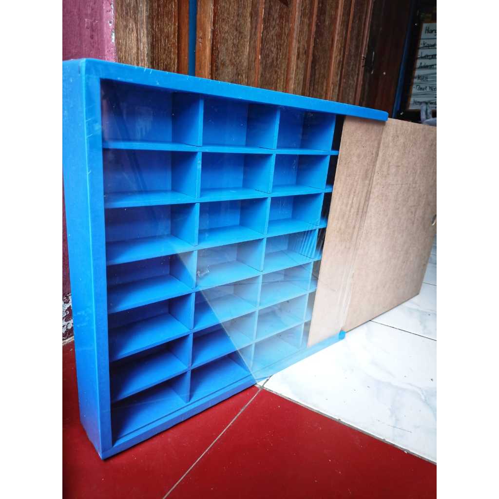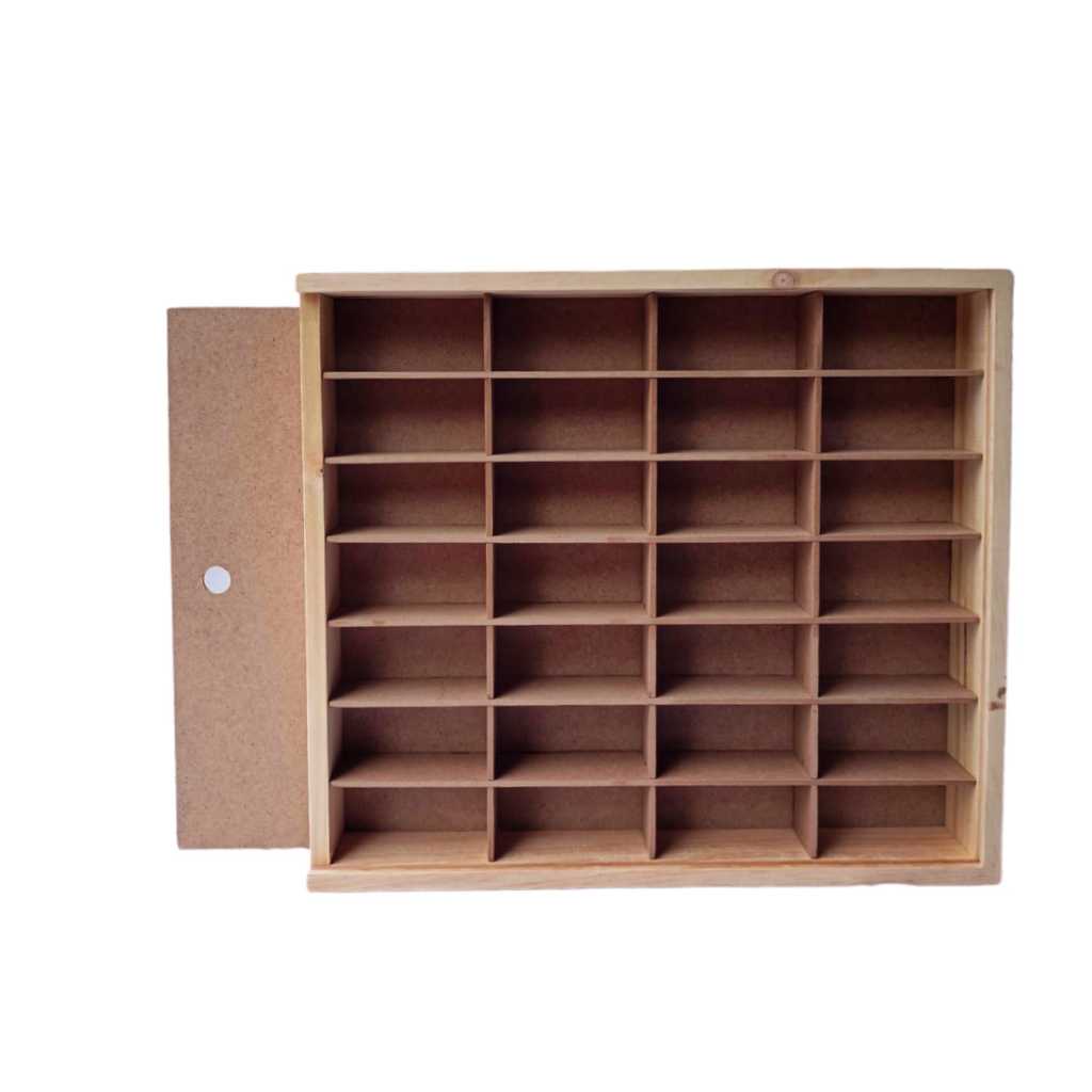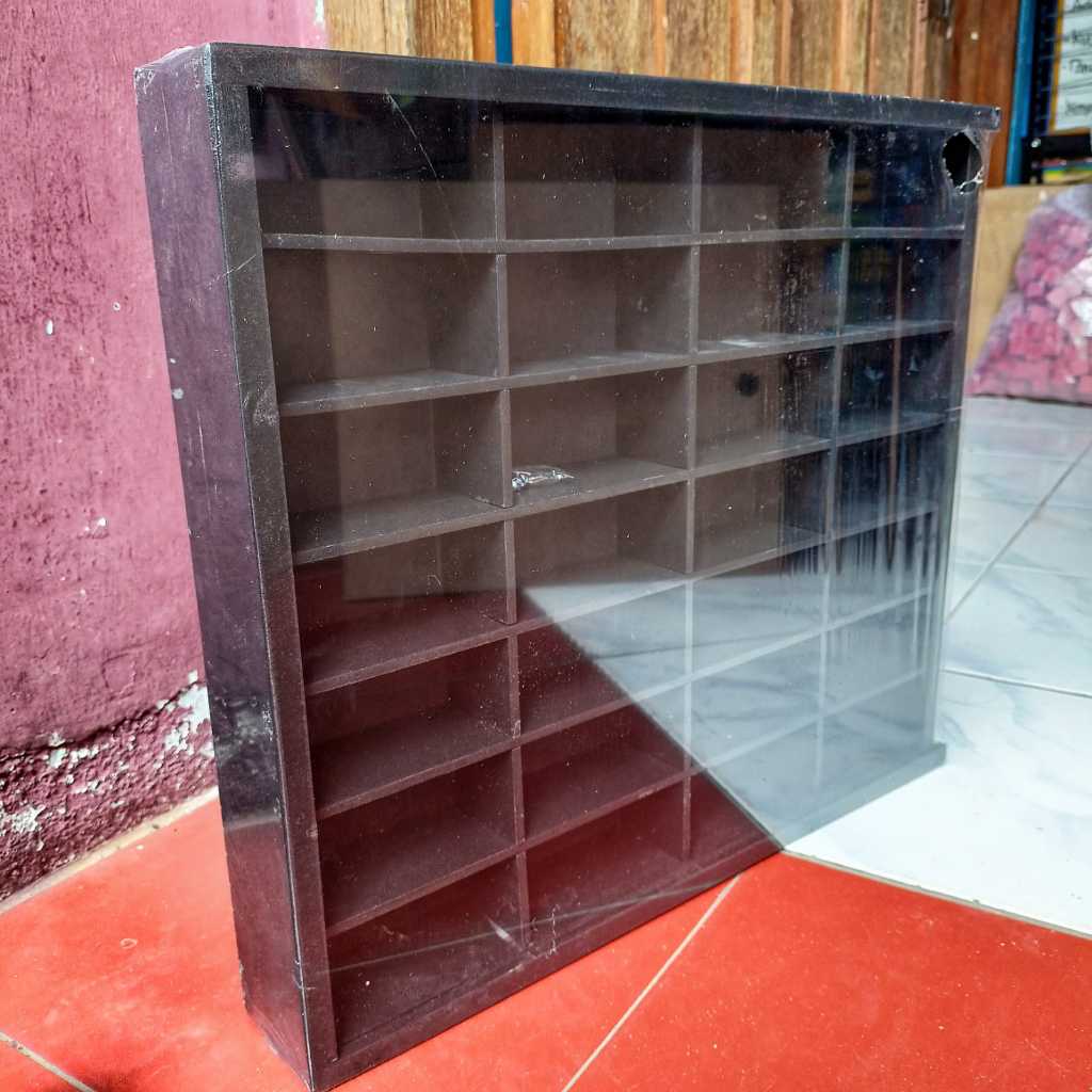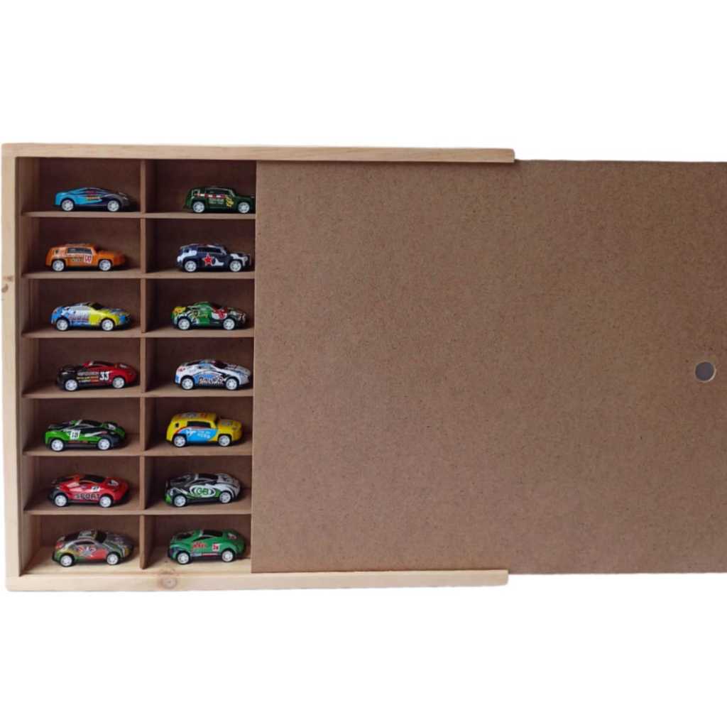 Rak Hot Wheels Isi 28 Slot 1:64 Bahan Kayu Dilengkapi Penutup MDF/Akrilik Bisa Gantung Rak Gantung