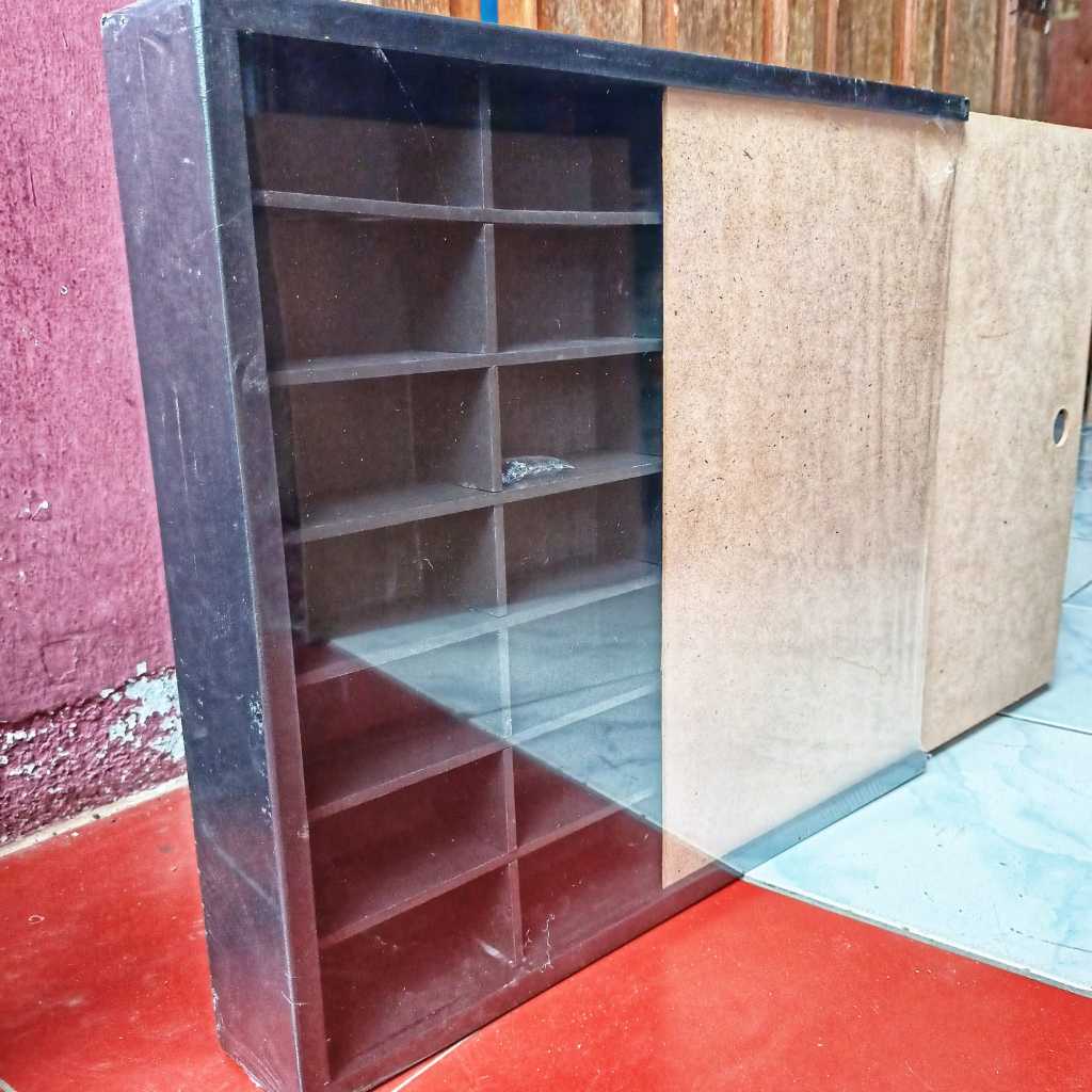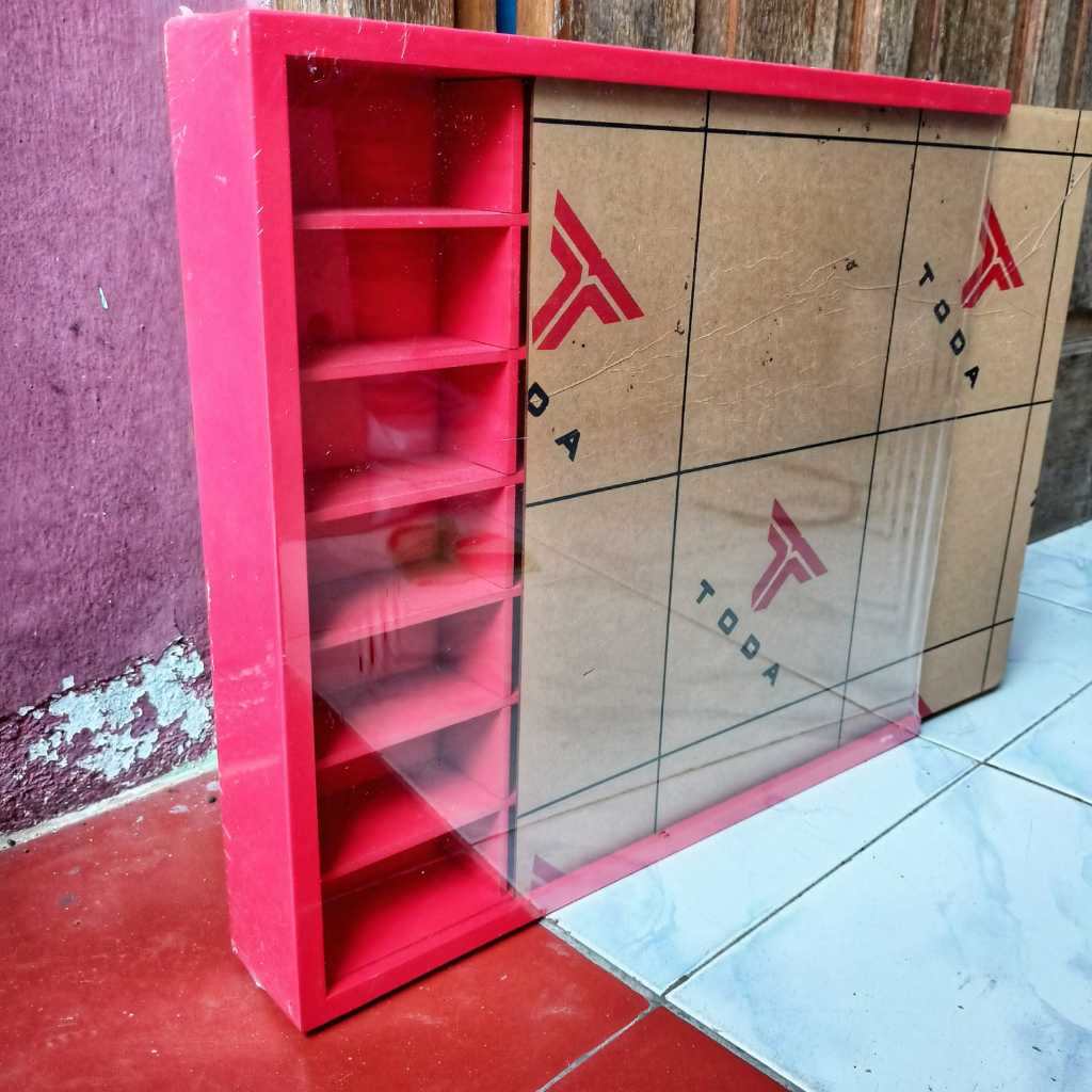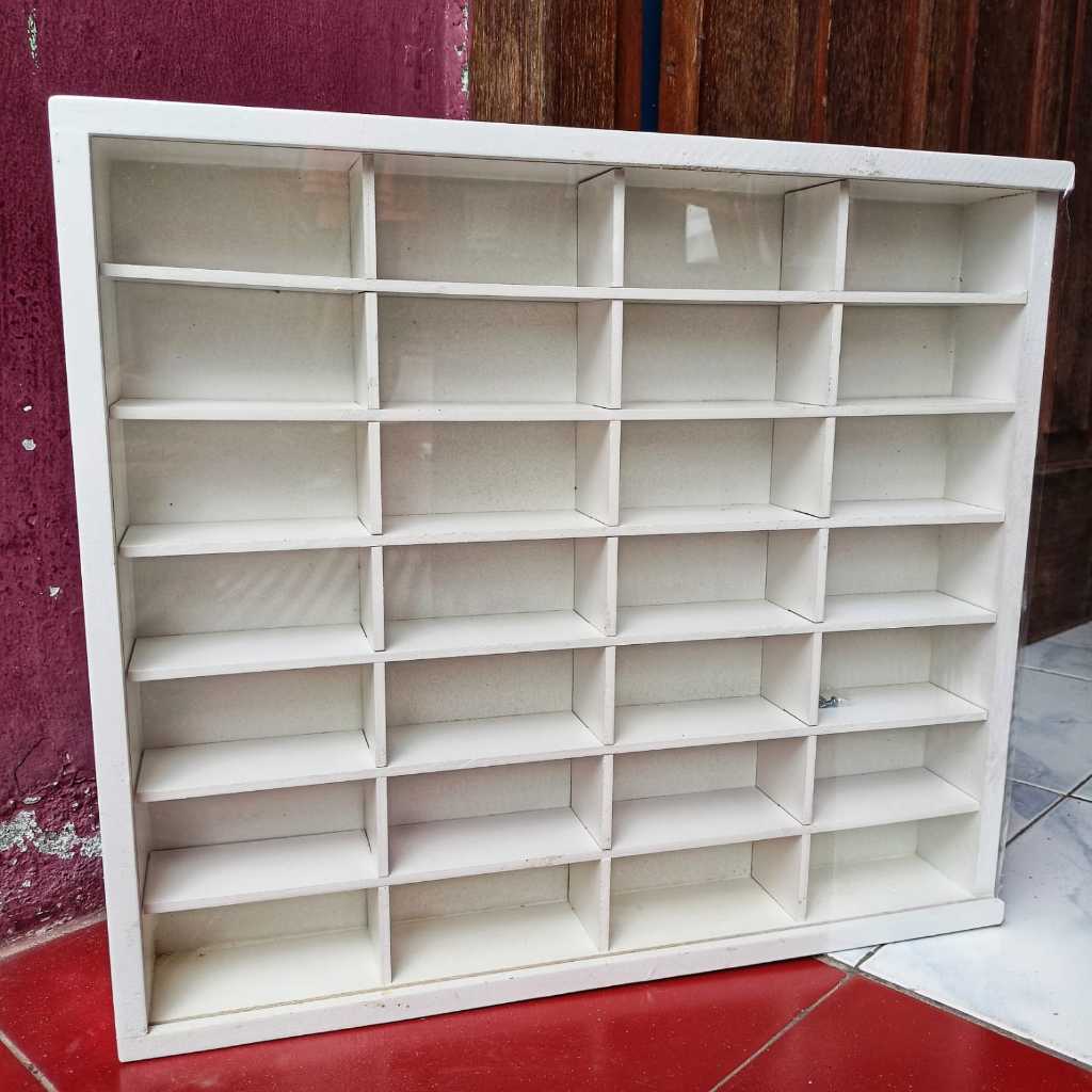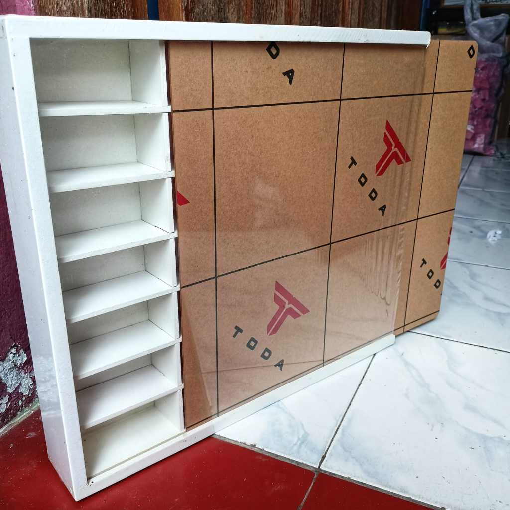 Rak Hot Wheels Isi 28 Slot 1:64 Bahan Kayu Dilengkapi Penutup MDF/Akrilik Bisa Gantung Rak Gantung