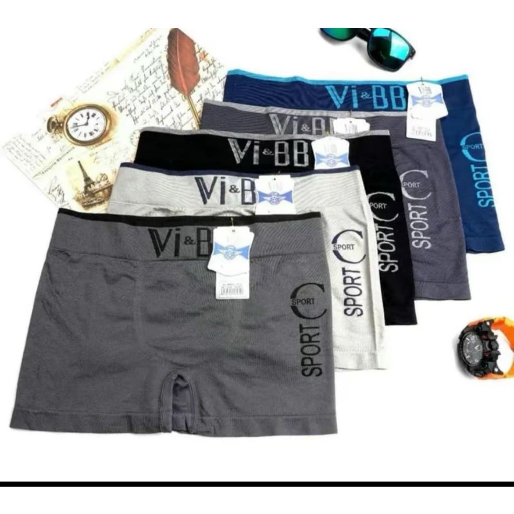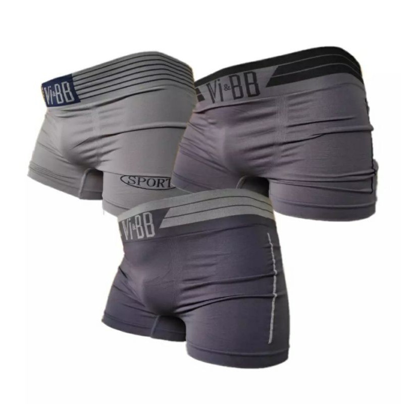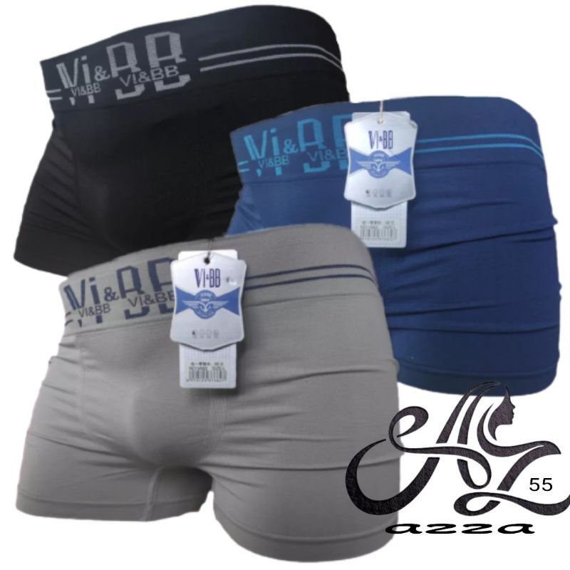 Vi & BB Paket 3 pcs Celana dalam pria model boxer bahan rajut tampa jahitan samping