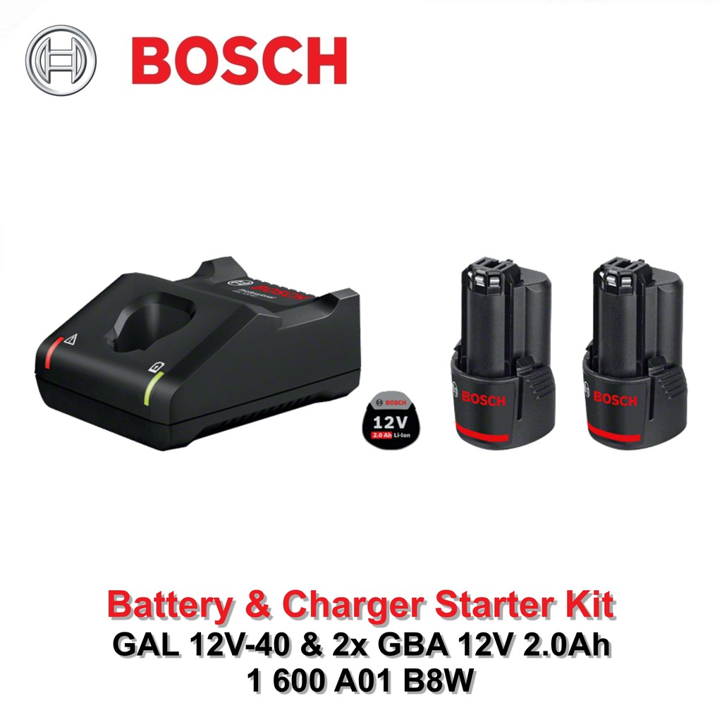 Bosch Starter Kit 12V-40 Charger 12V & 2x Baterai 2Ah 12V