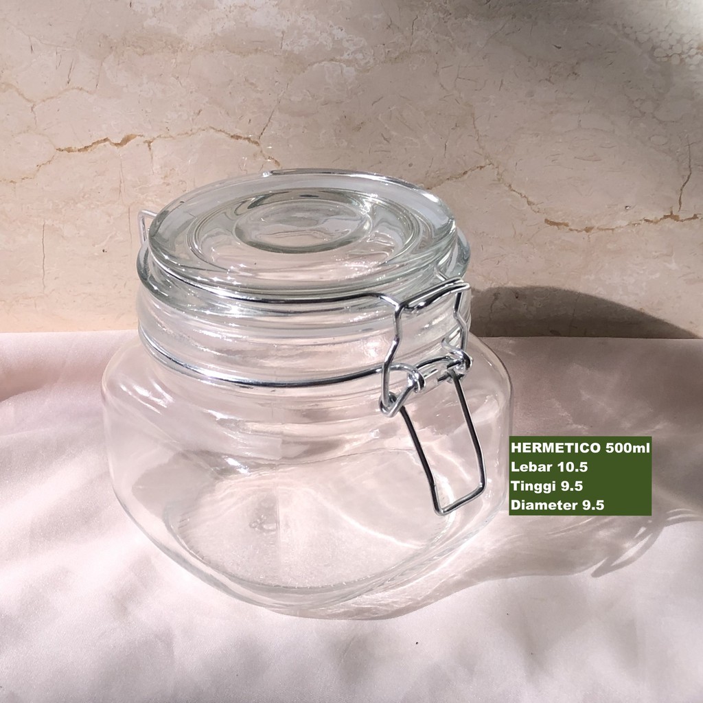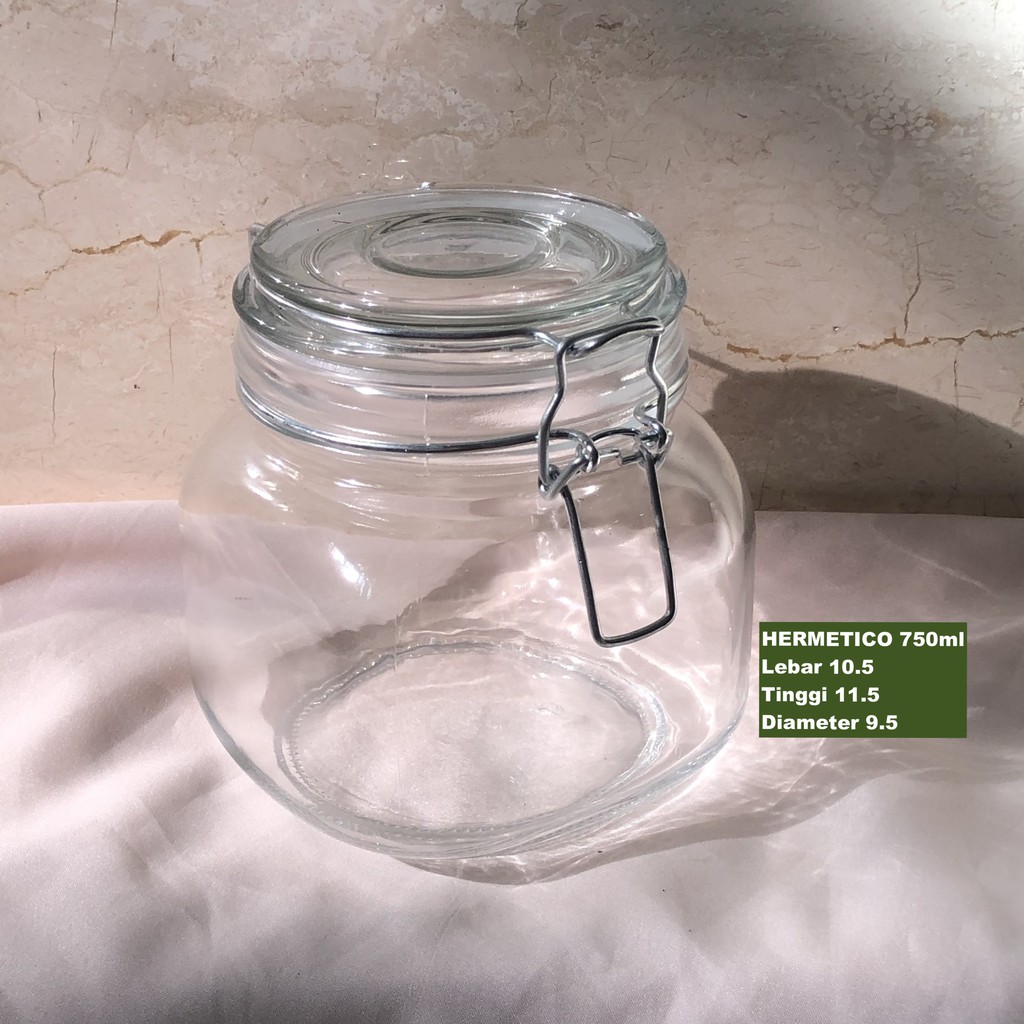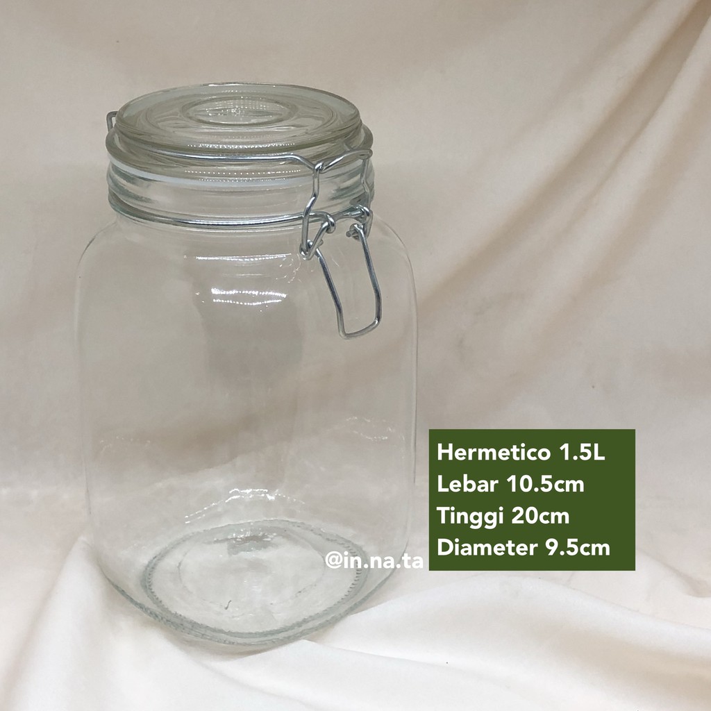 Hermetico 500ml, 750ml, 1L, 1.5L, Jar Toples Kaca Penyimpanan Kedap Udara dengan Pengait Multifungsi