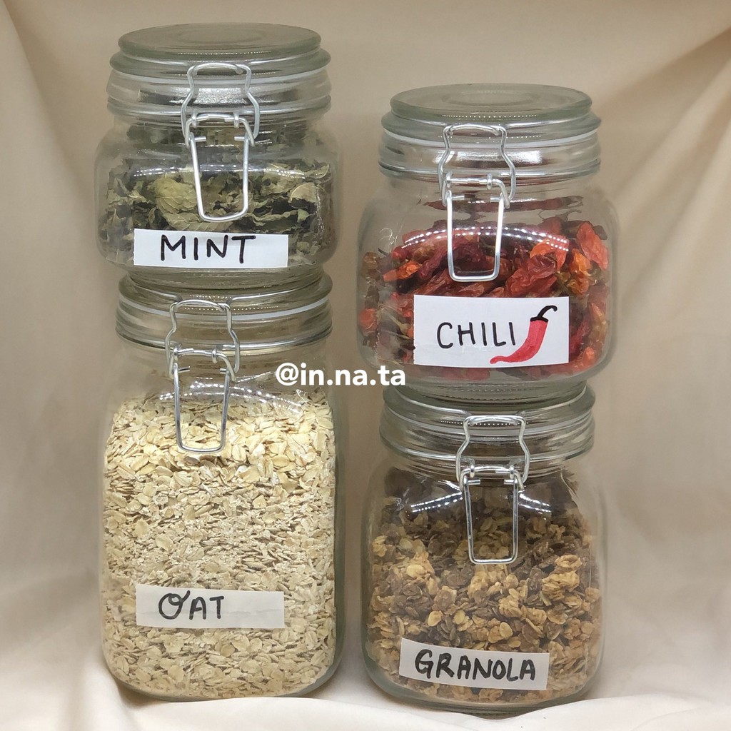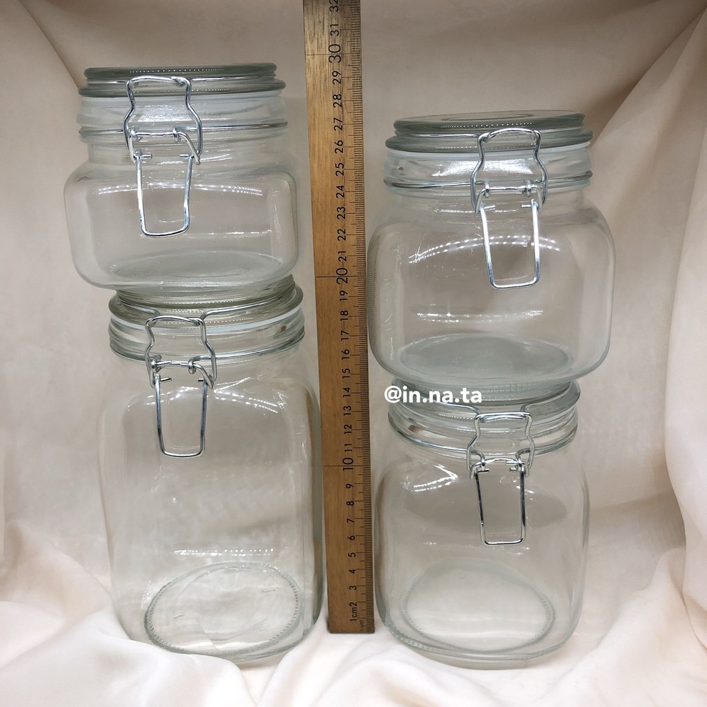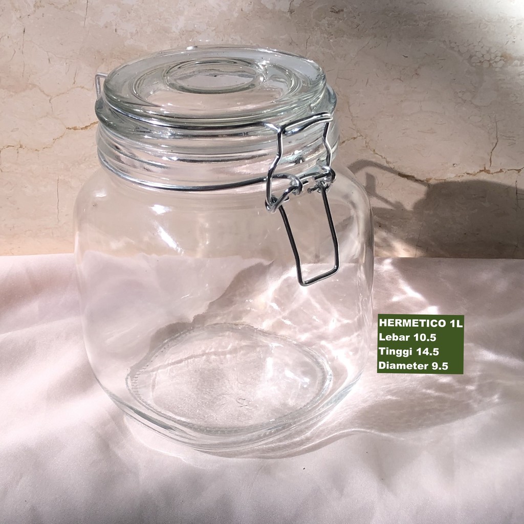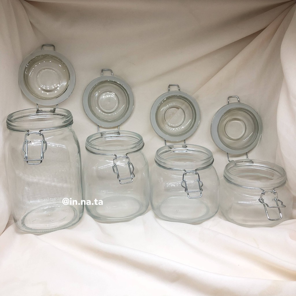 Hermetico 500ml, 750ml, 1L, 1.5L, Jar Toples Kaca Penyimpanan Kedap Udara dengan Pengait Multifungsi