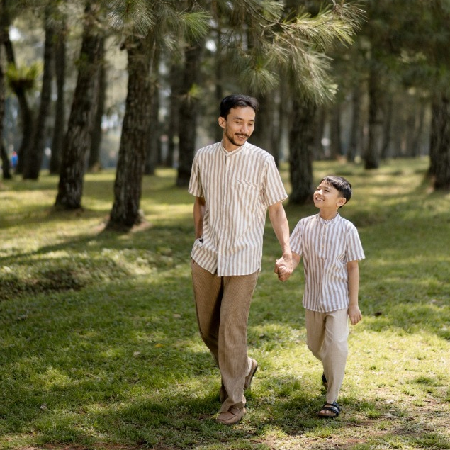 Minicottons Kemko Kemeja Koko Kembar Ayah Motif Salur Striped Dewasa
