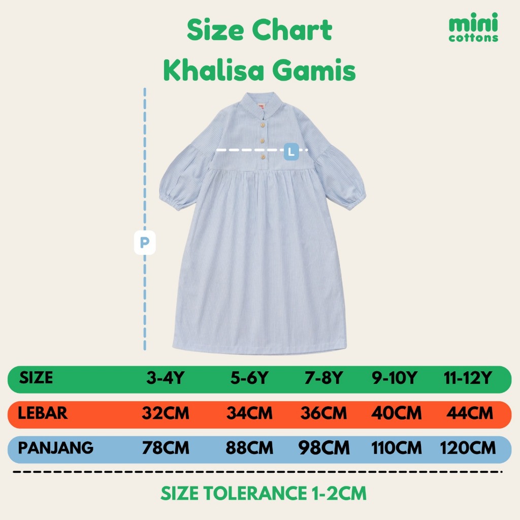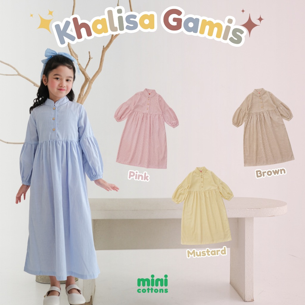 Minicottons Dress Lebaran Gamis Khalisa Salur Striped Anak Perempuan 3-12 Tahun