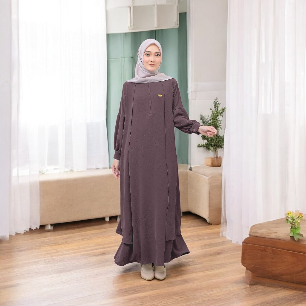 Gamis Polos Variasi Layer Zalenka Dress Size S M L XL Bahan Tifany Twill Baju Daily Wear OOTD Casual