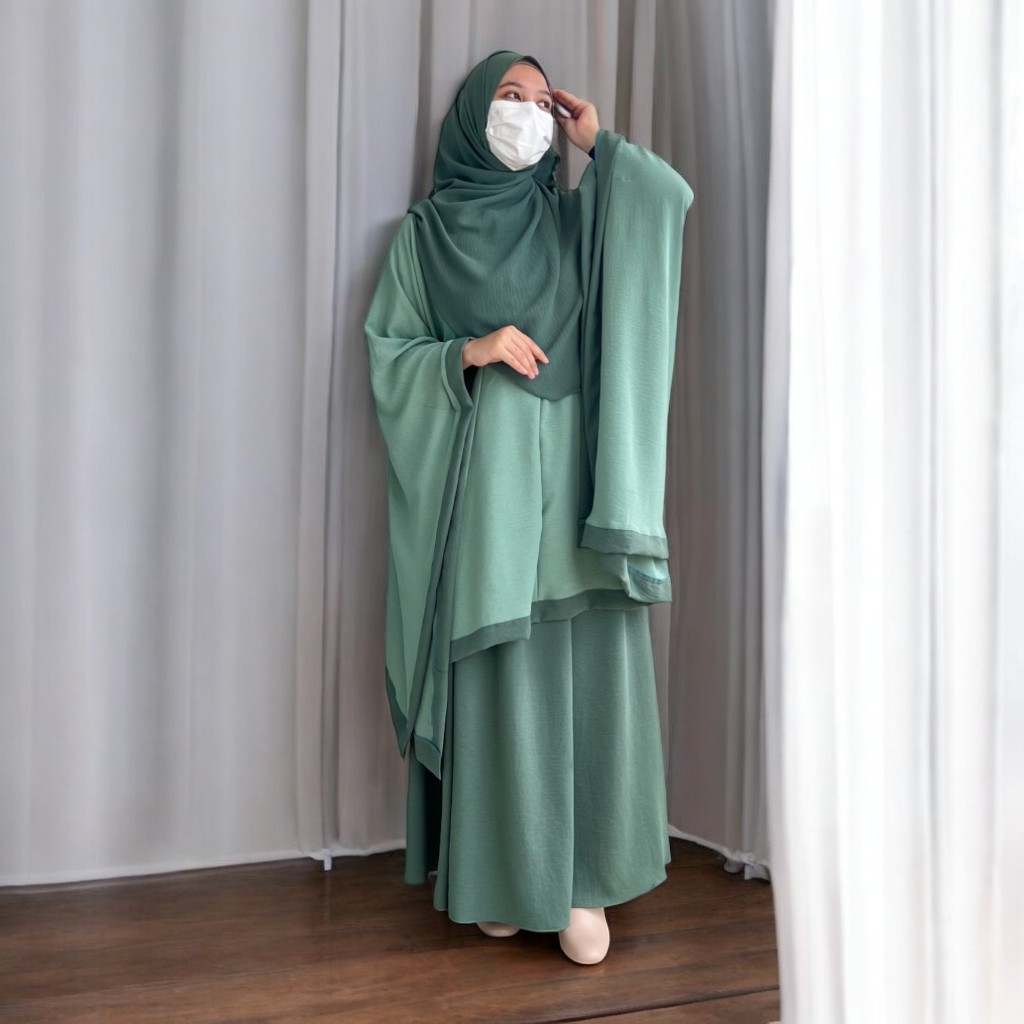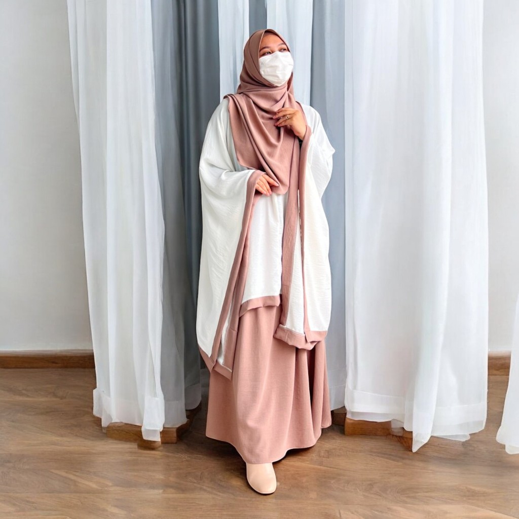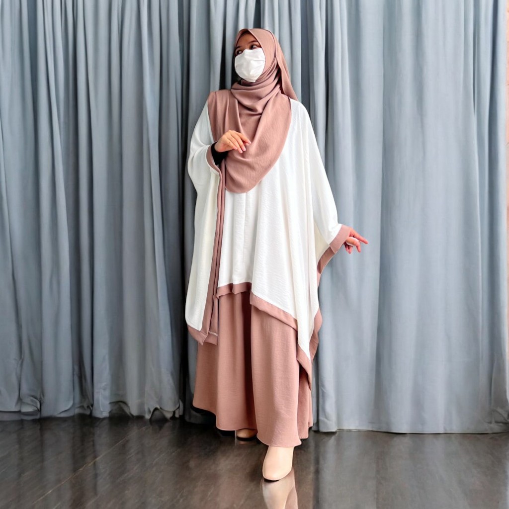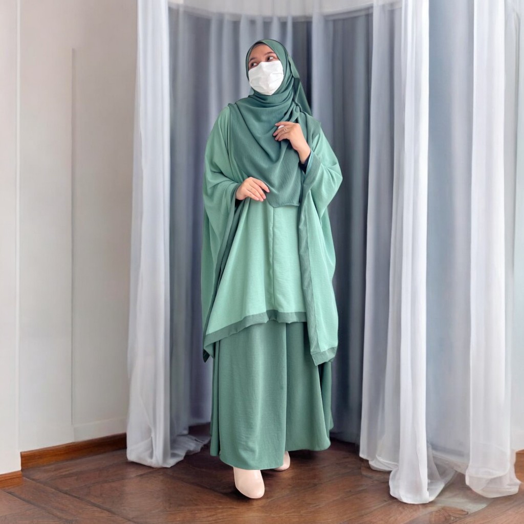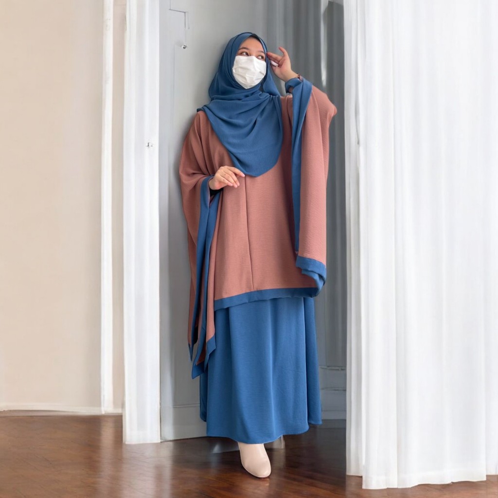 Azra One Set Tunik Kaftan Plus Bawahan Rok Dan Kerudung Pashmina Ovale Baju Daily Casual Outfit 2025