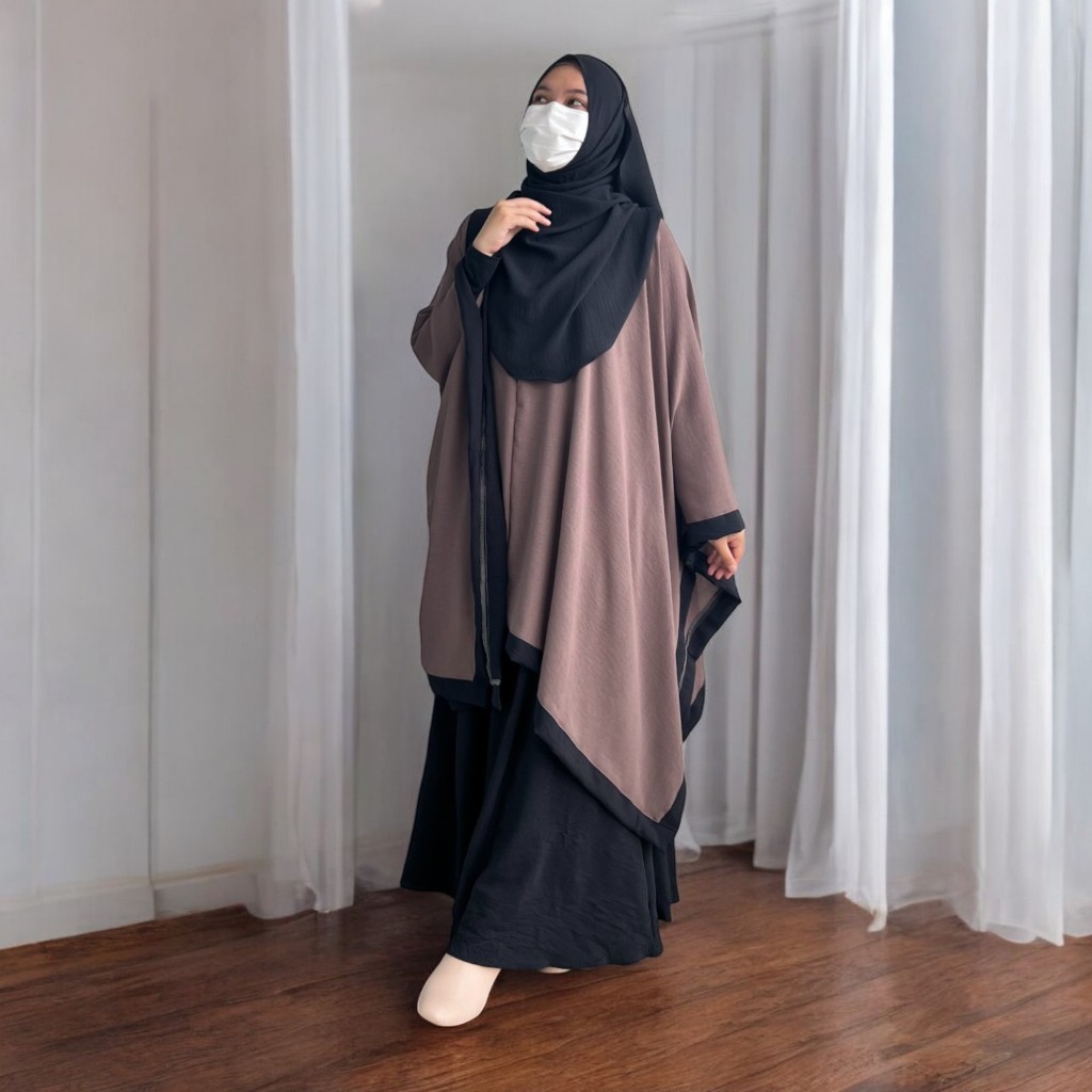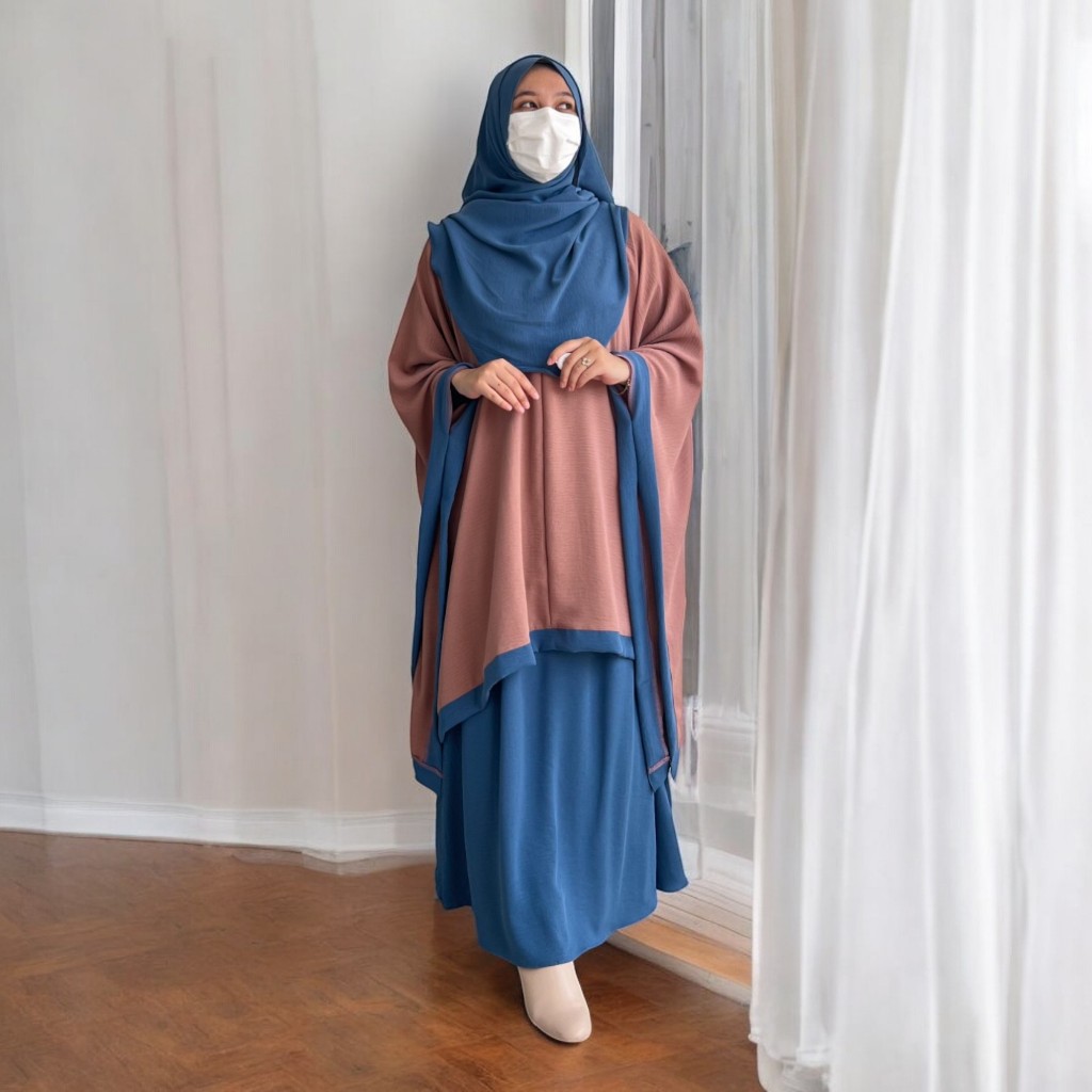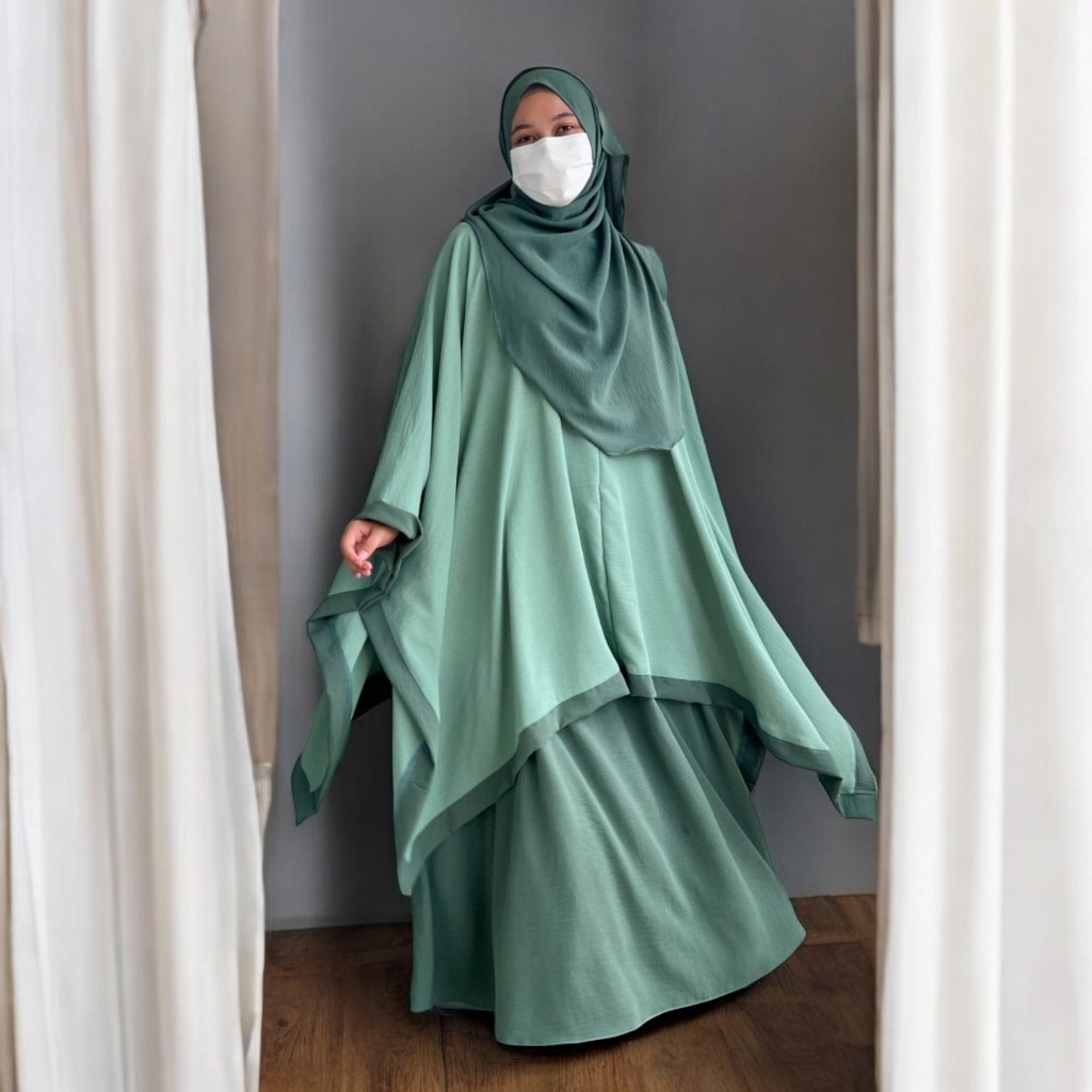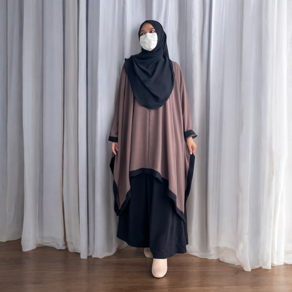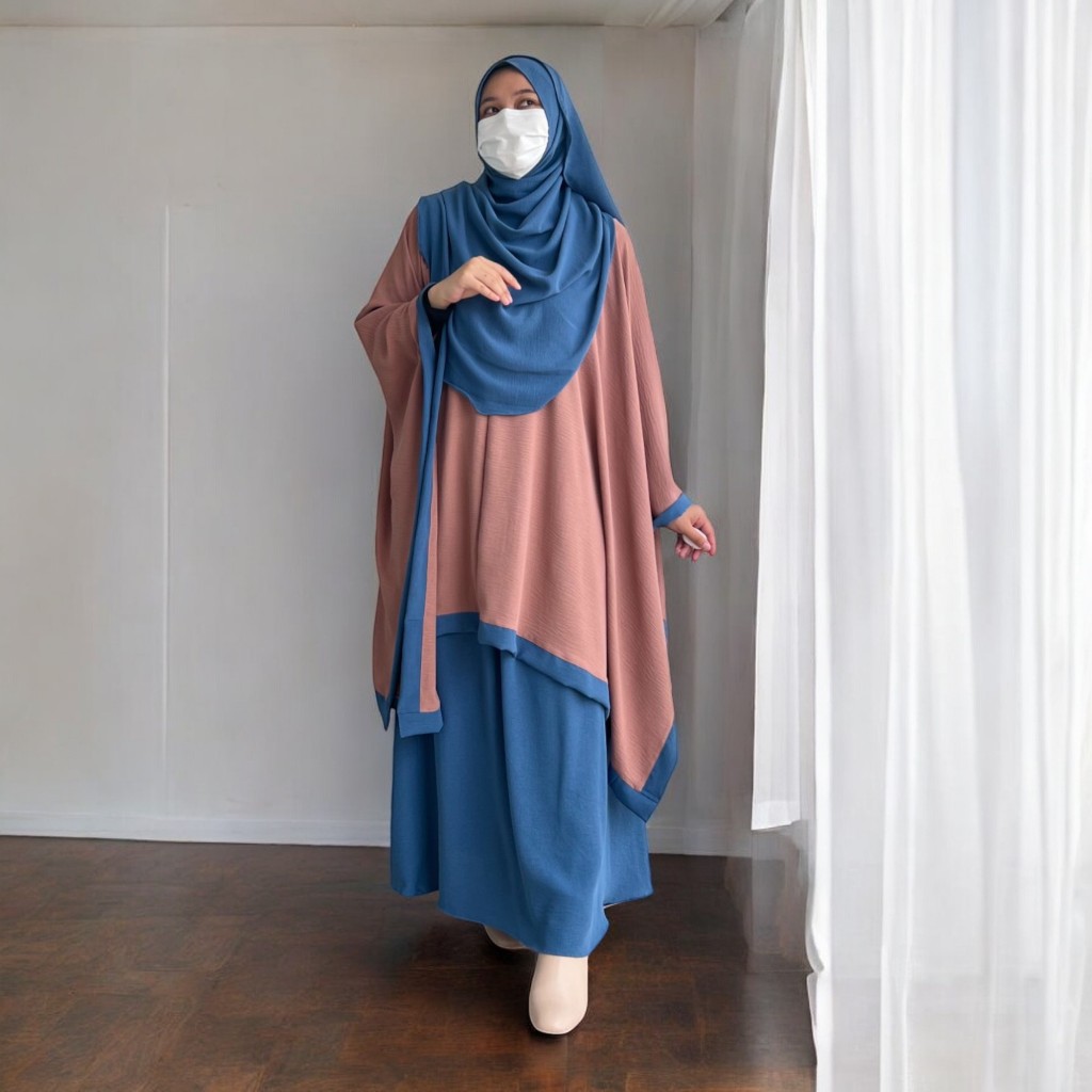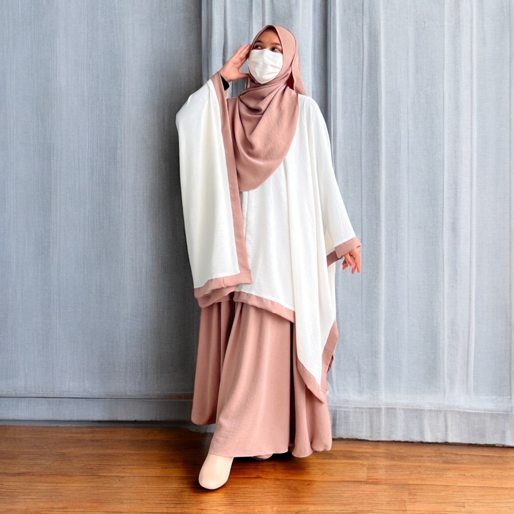 Azra One Set Tunik Kaftan Plus Bawahan Rok Dan Kerudung Pashmina Ovale Baju Daily Casual Outfit 2025