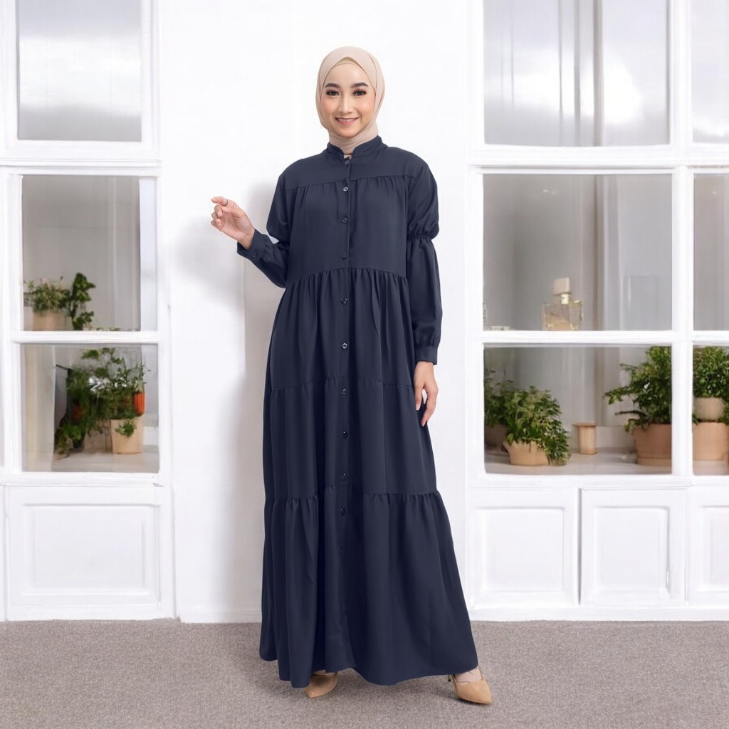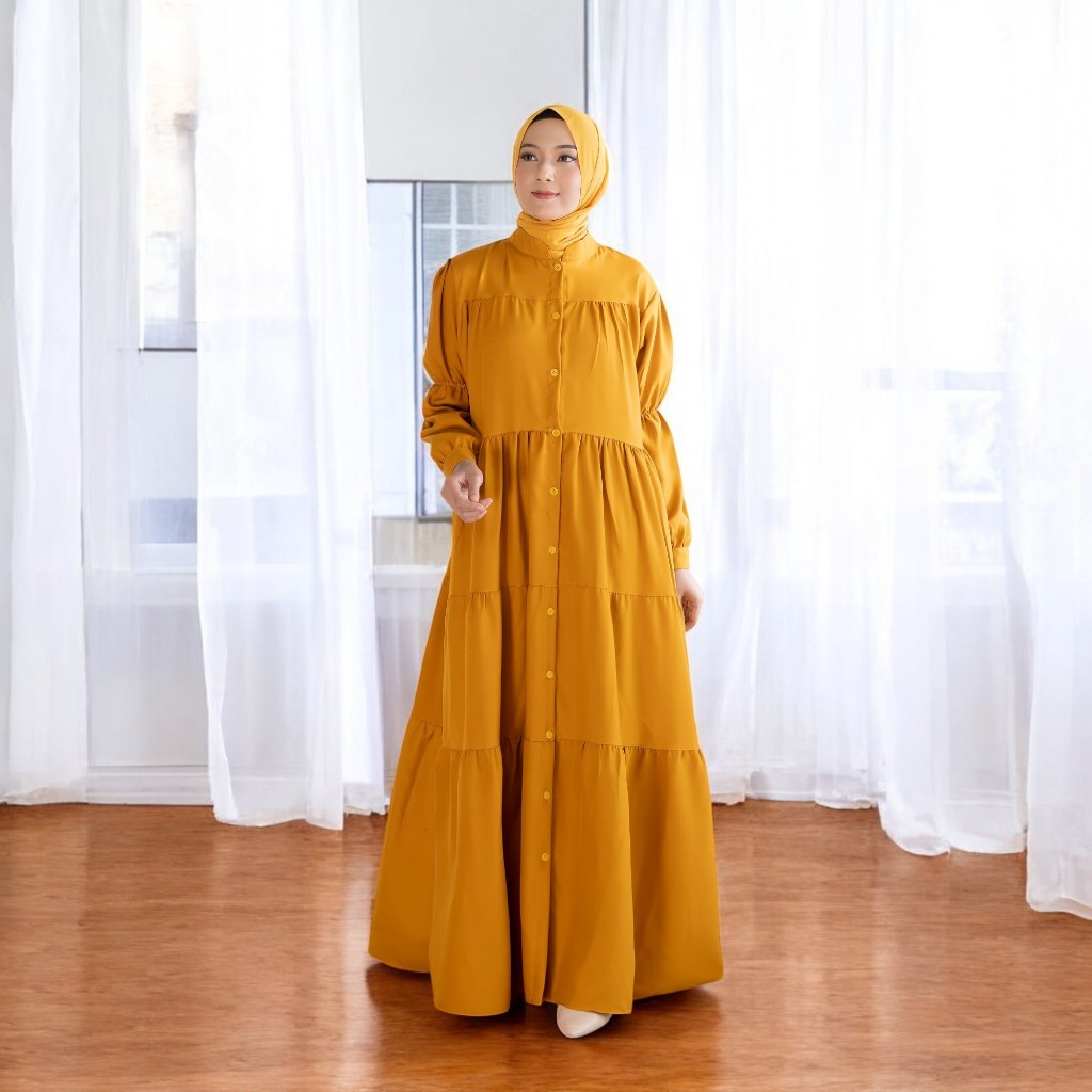 Gamis Polos Wanita Zahira Size S M L XL Dress Muslim Korean Style Variasi Ruffle Susun Outfits 2025