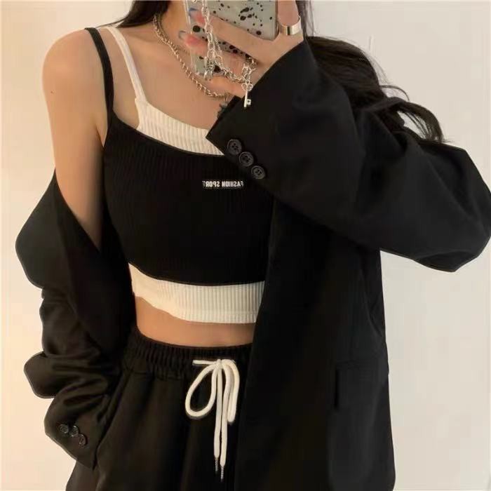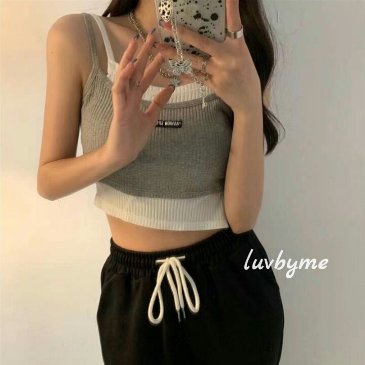 [ luvbyme ]JIHYO Korean Crop Top Style Double Layer