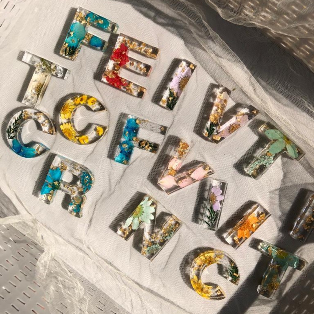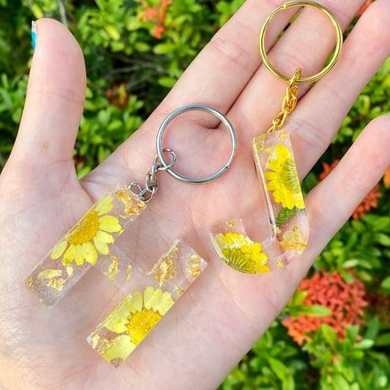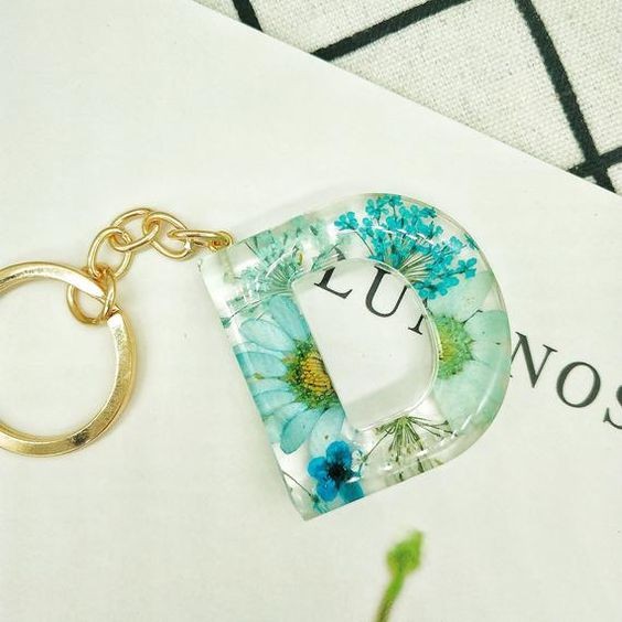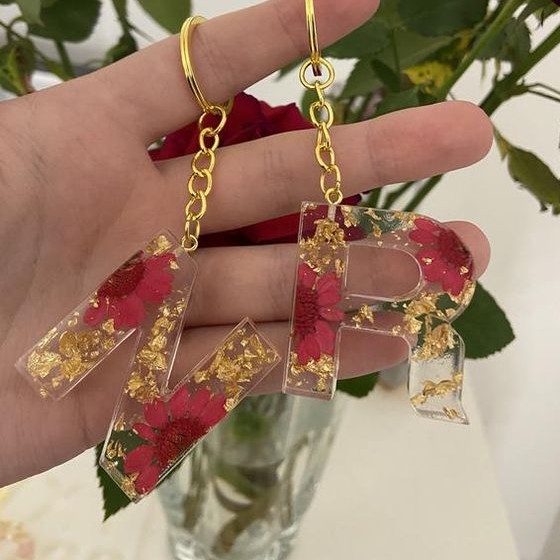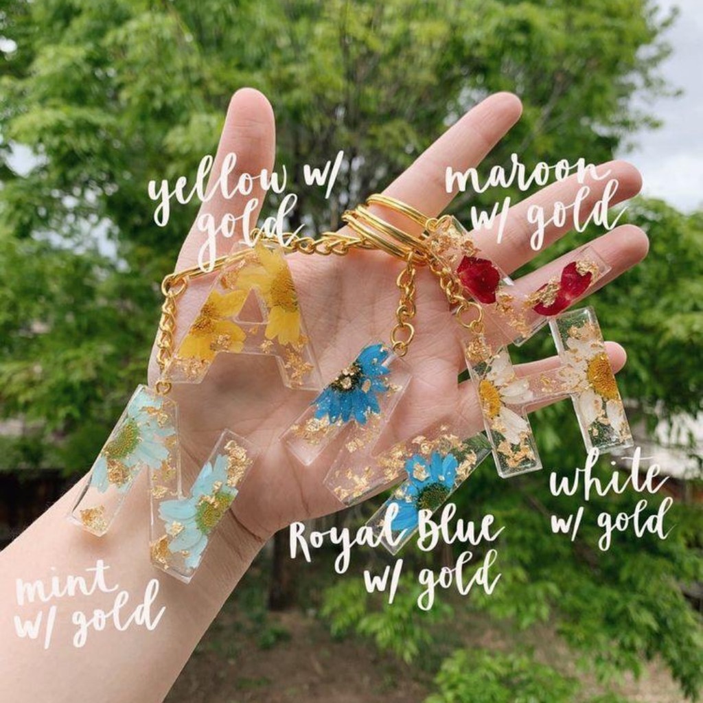 GANTUNGAN KUNCI HURUF RESIN BUNGA ASLI (A-Z)(0-9) / LETTER KEYCHAIN FLOWERS