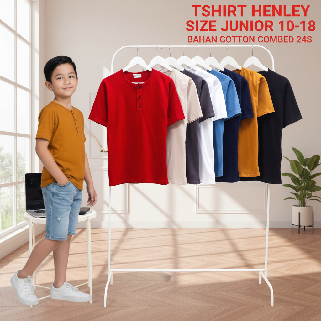 Kaos Model Henley Size Junior 10-18 Bahan Katun Combed 24s By Knitto Textile 100% Katun