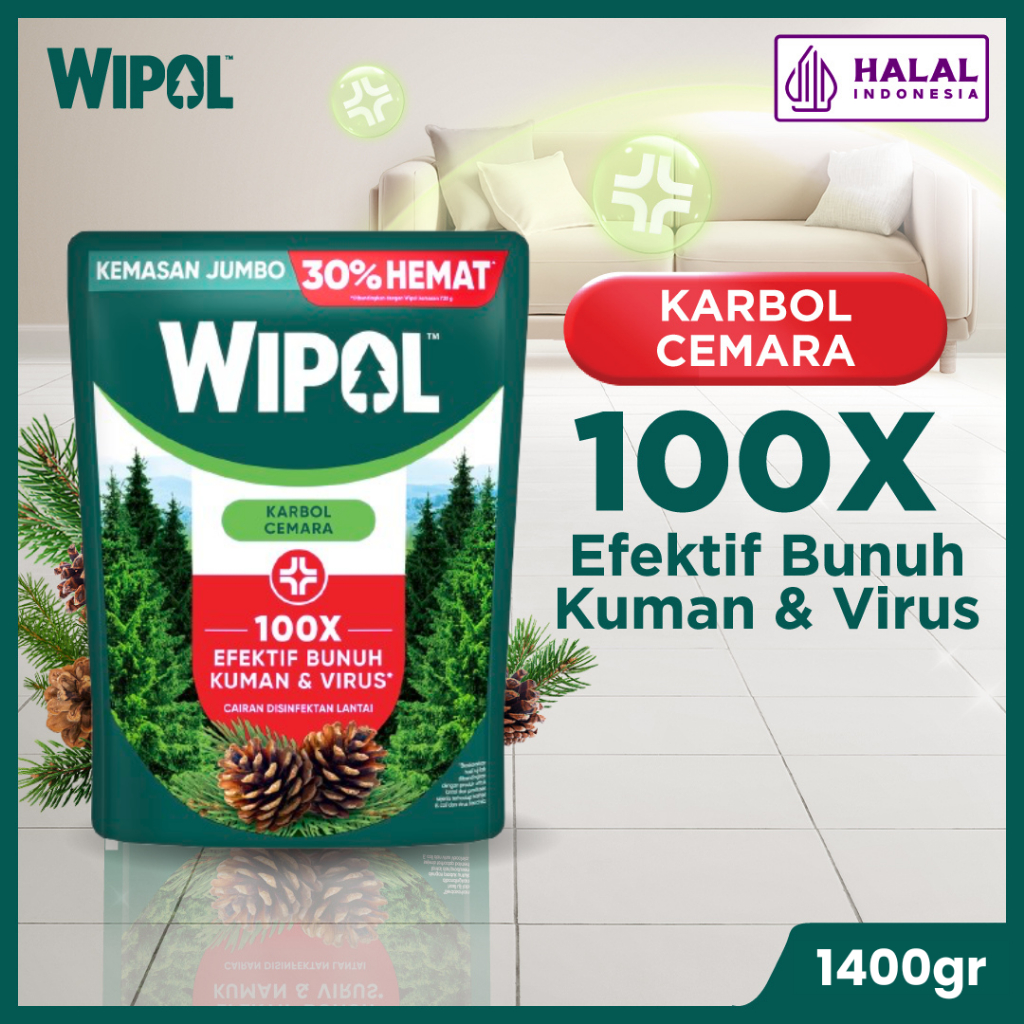 Wipol Pembersih Lantai Cairan Disinfektan Teruji Dermatologis Karbol Cemara 1400 g