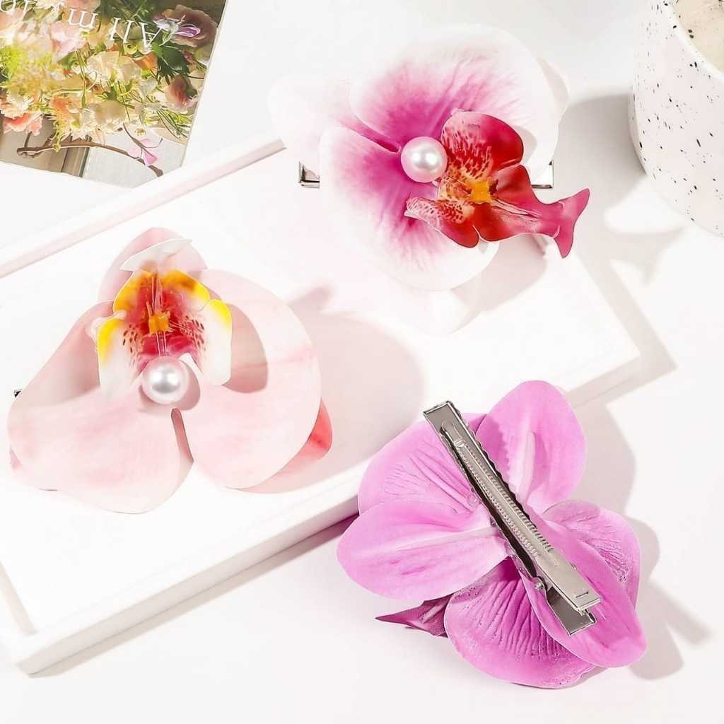 Jepit Rambut Bunga Anggrek Cantik Fashion Wanita Jepitan Rambut Bunga Anggrek