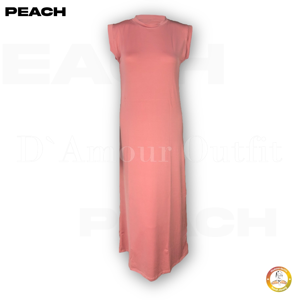 Baju Manset Gamis Wanita Warna Polos Lengan Pendek-Yukensi Kerah O Neck Inner Long Dress Dalaman Gamis Cewek Kaos Dalaman Wanita Bahan Spandek Balon Adem Elastis Nyaman Dipakai Harian Muslimah Hijab Remaja Dewasa Outfit Santai Simple Basic Premium Casual