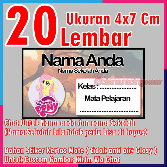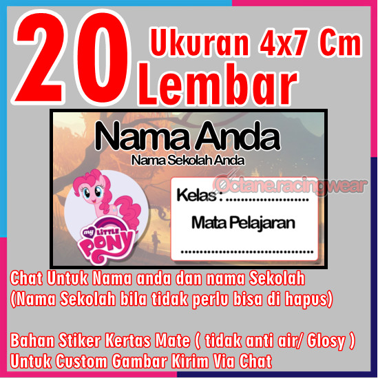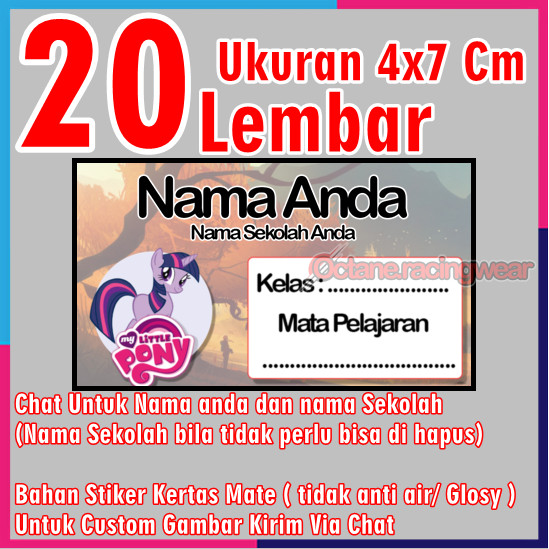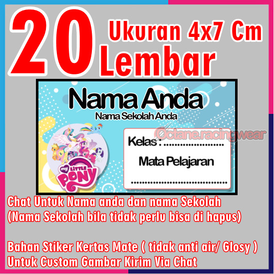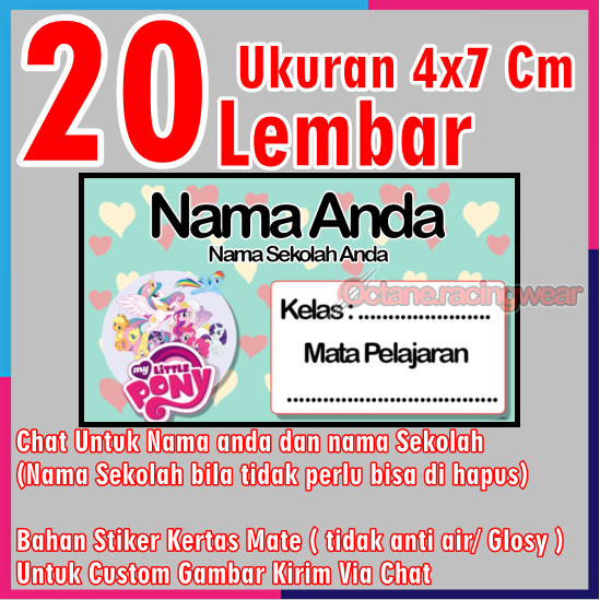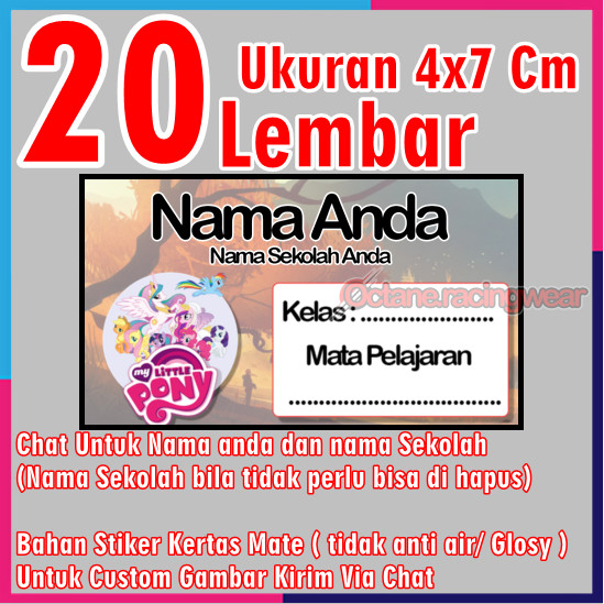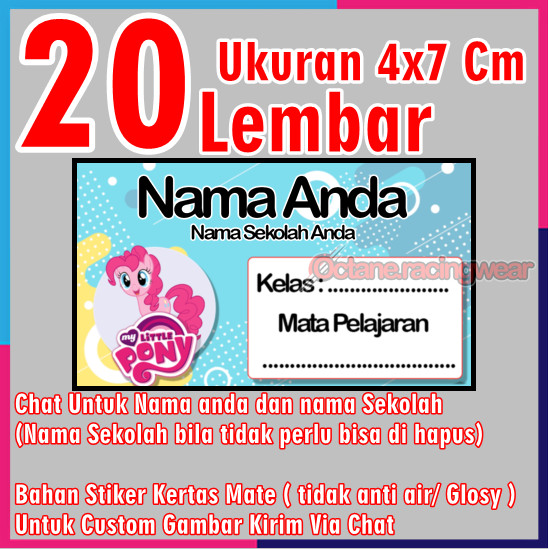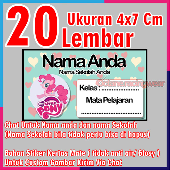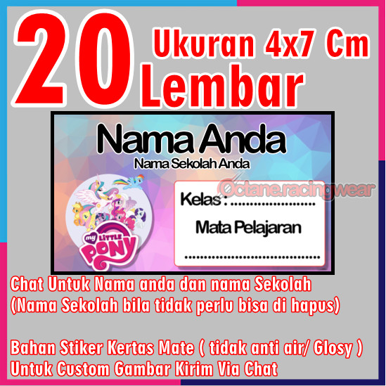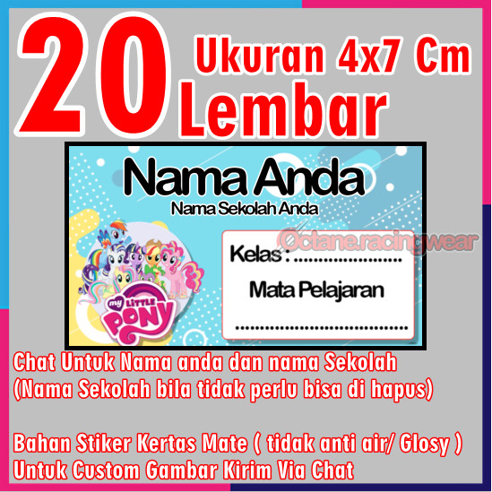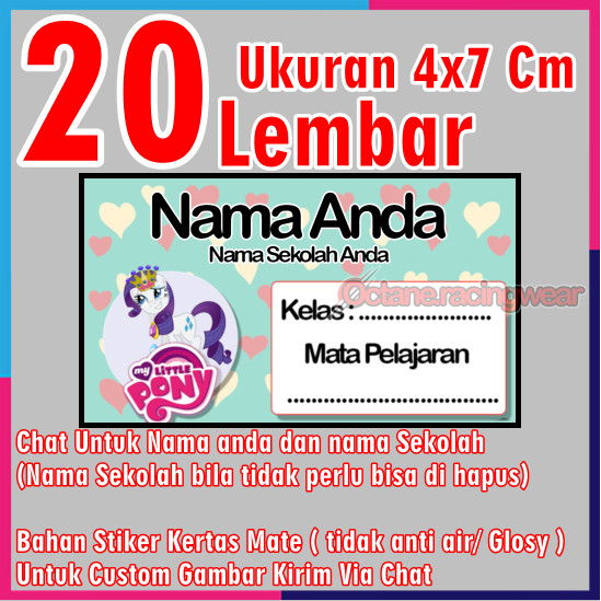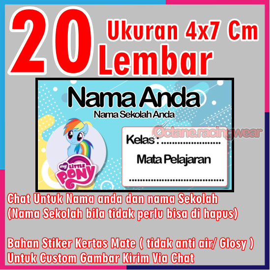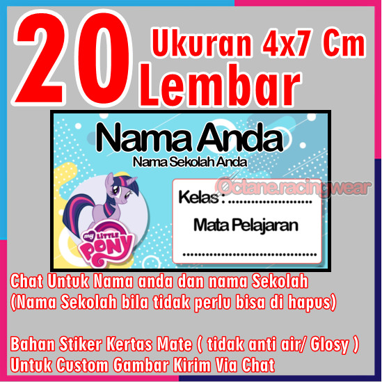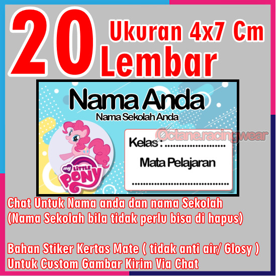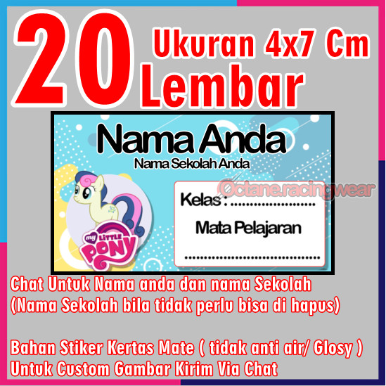 Stiker Label Buku Mata pelajaran sekolah Sd Nama Sticker 20 Lembar mini banyak Murah Custom anak Sd cewe cowo Karakter Pony Kuda Vol 48