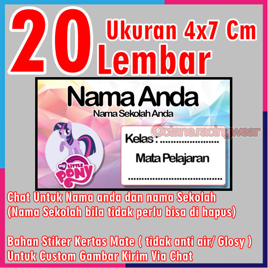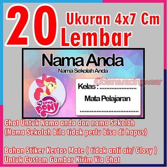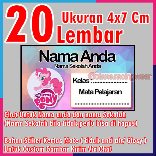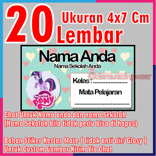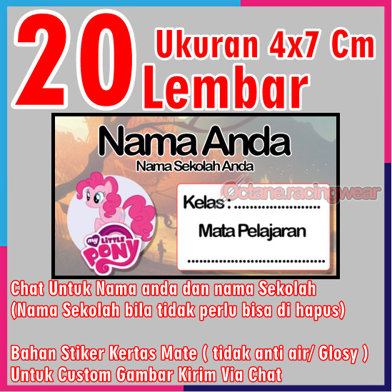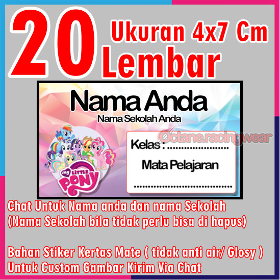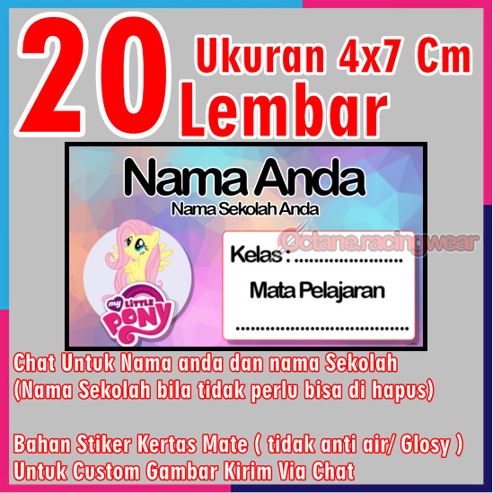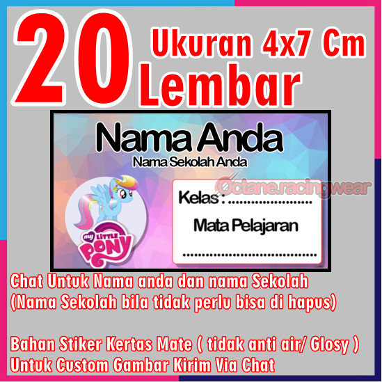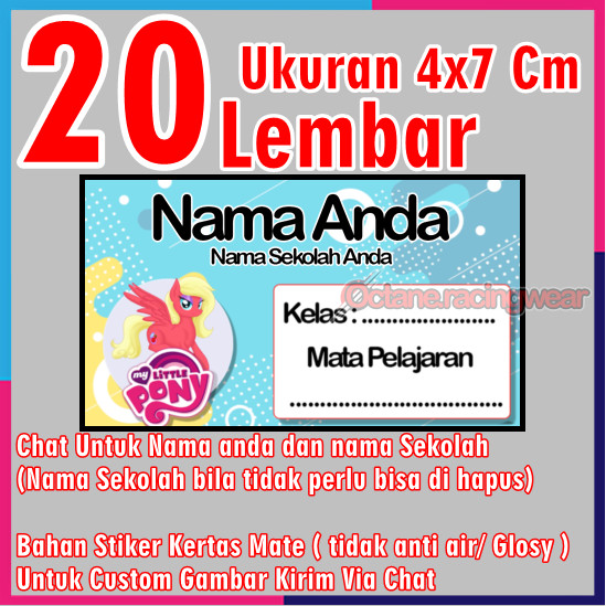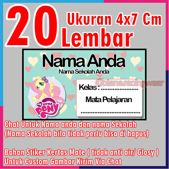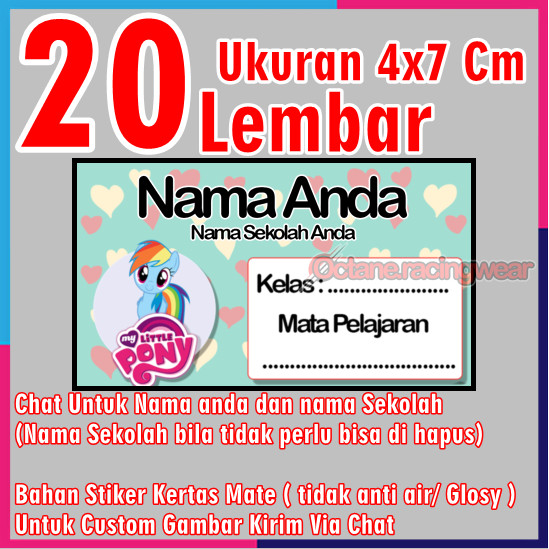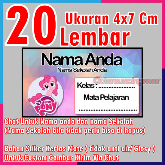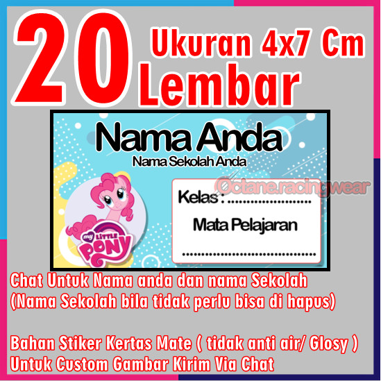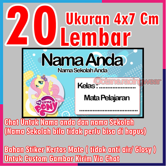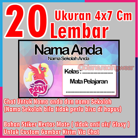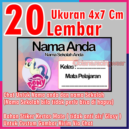 Stiker Label Buku Mata pelajaran sekolah Sd Nama Sticker 20 Lembar mini banyak Murah Custom anak Sd cewe cowo Karakter Pony Kuda Vol 48