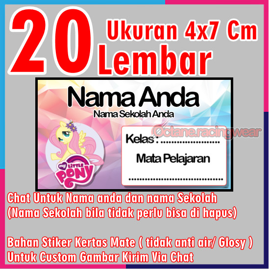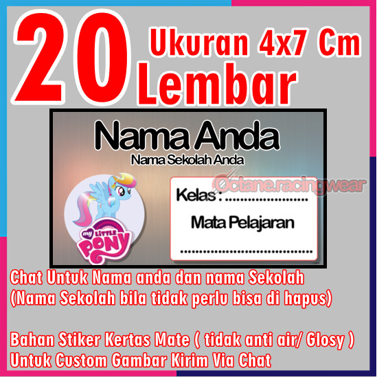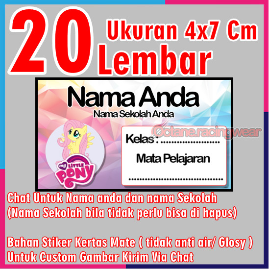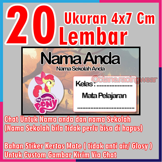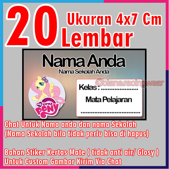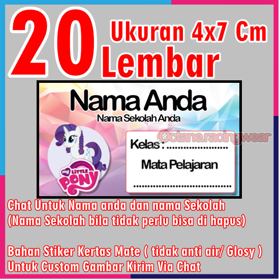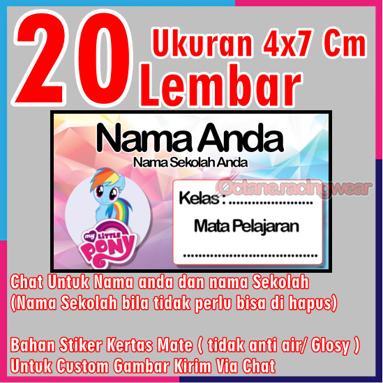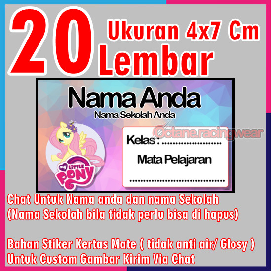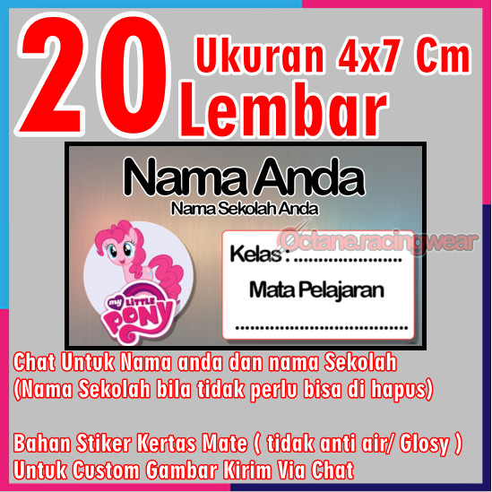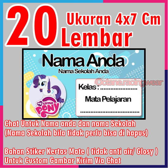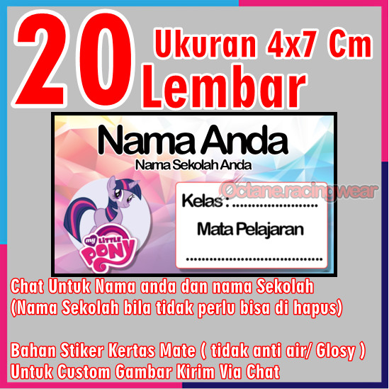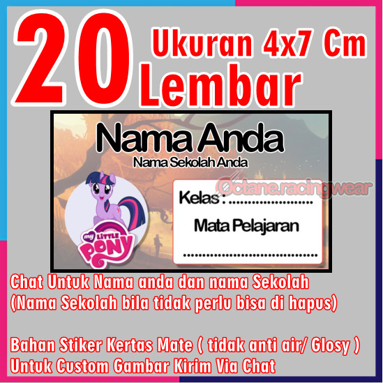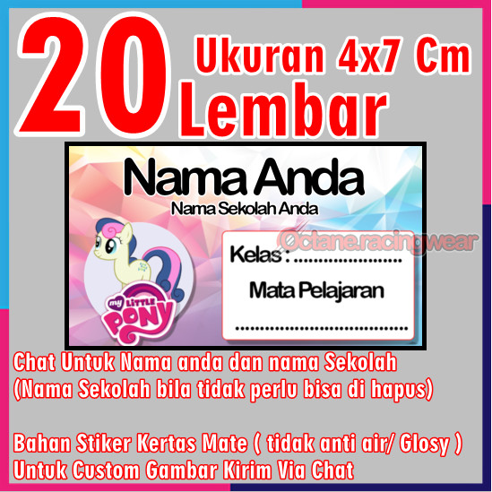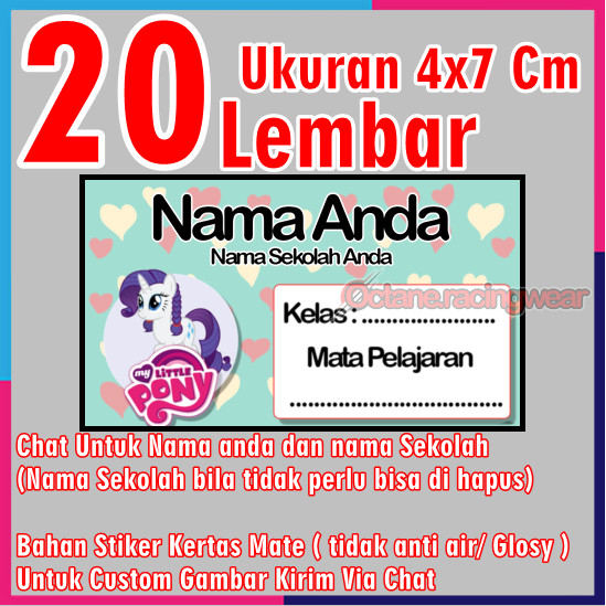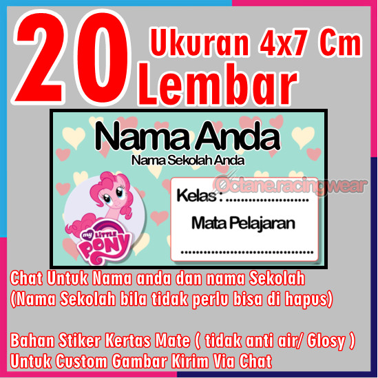 Stiker Label Buku Mata pelajaran sekolah Sd Nama Sticker 20 Lembar mini banyak Murah Custom anak Sd cewe cowo Karakter Pony Kuda Vol 48