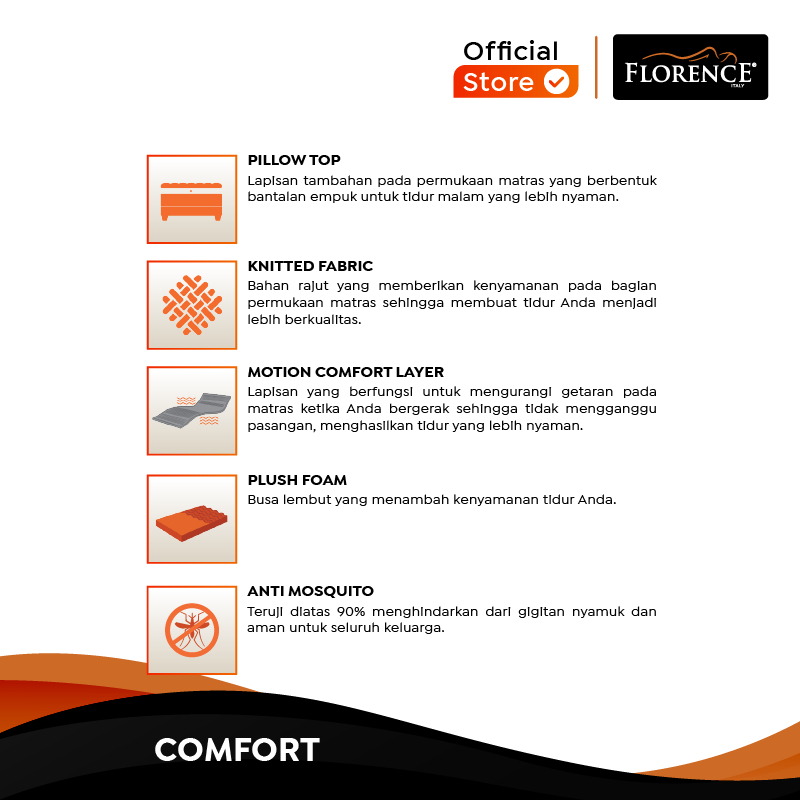 FLORENCE Genoa [Medium] - Kasur Spring Bed Anti Nyamuk [Full Set]