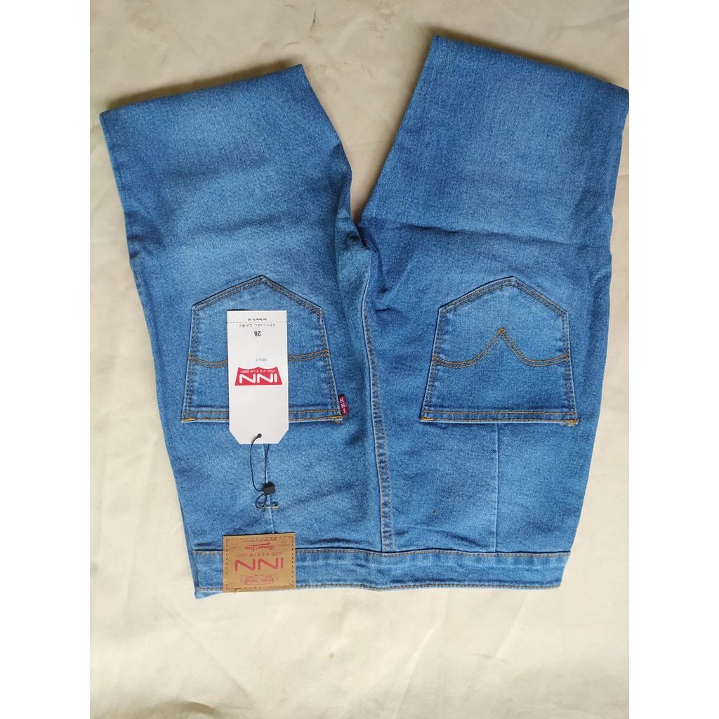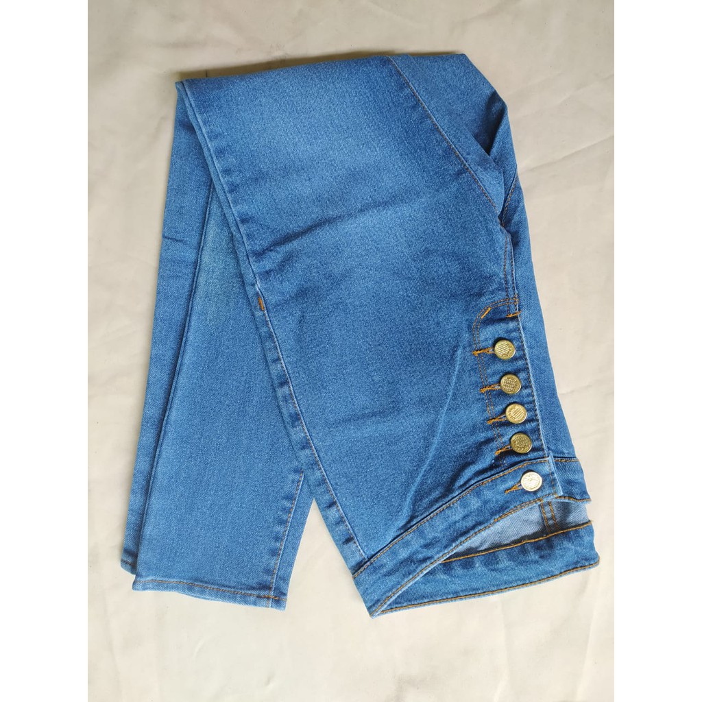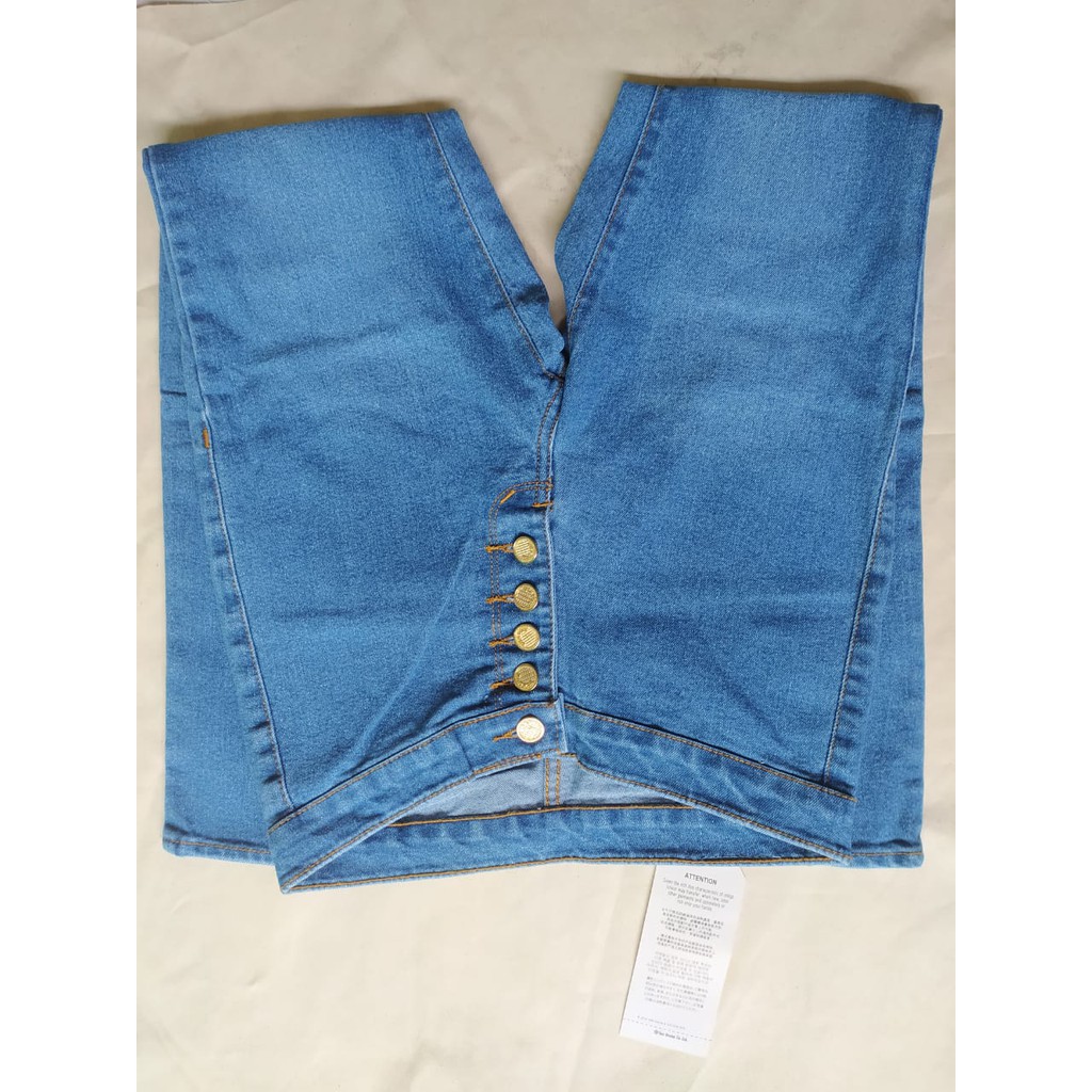 INN DENIM Celana jeans kancing lima fashion wanita haiwes pinggang tinggi kancing banyak biru muda