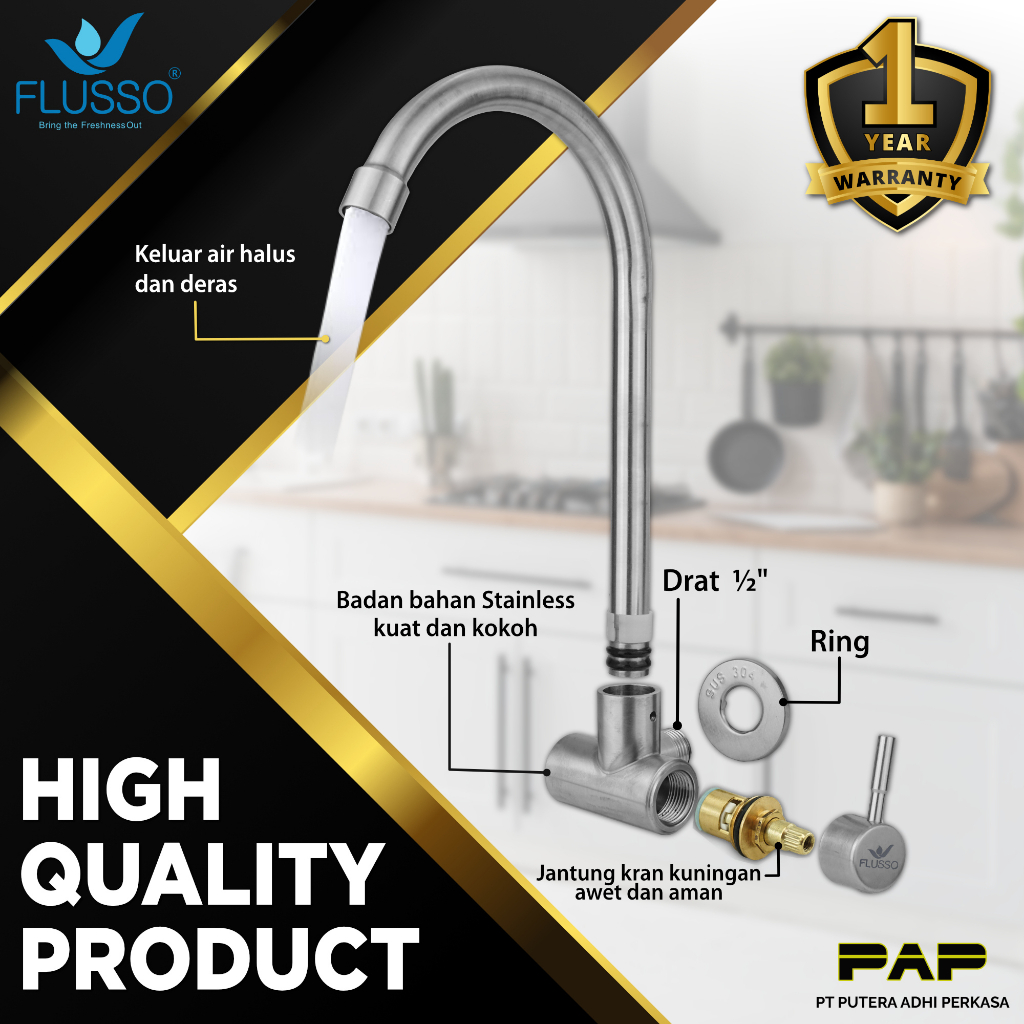 Flusso Keran Angsa Tembok 1/2"stenlis sus 304 S 623