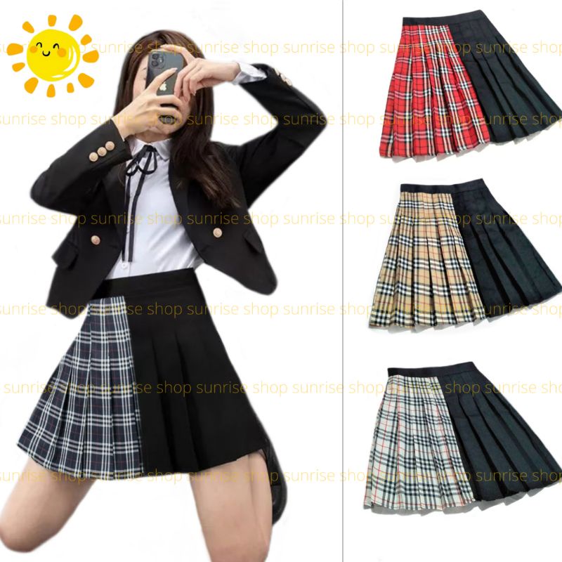MINI TARTAN TENNIS SKIRT TWO TONE KOREAN